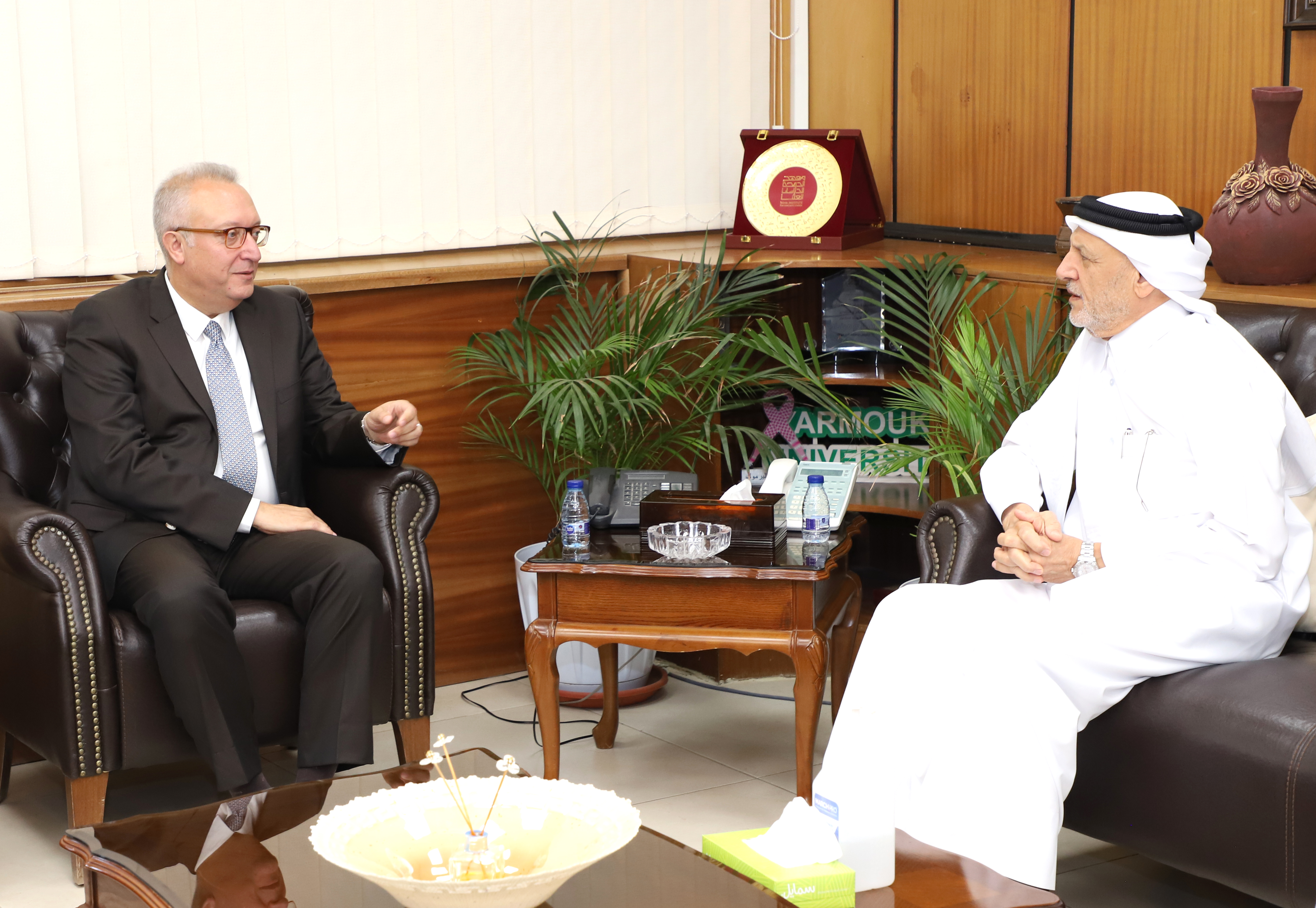 وجرى خلال اللقاء بحث سبل التعاون الممكنة بين اليرموك ووزارة التعليم والتعليم العالي في دولة قطر، كما اطلعوا على مراحل التطوير والتحديث التي تشهدها جامعة اليرموك على كافة الصعد والهادفة إلى مواكبة التطورات الحديثة التي تشهدها كافة حقول المعرفة، بهدف تأهيل كوادر بشرية تمتلك مهارات عالية المستوى قادرة على الانخراط في سوق العمل المحلي والدولي على حد سواء.