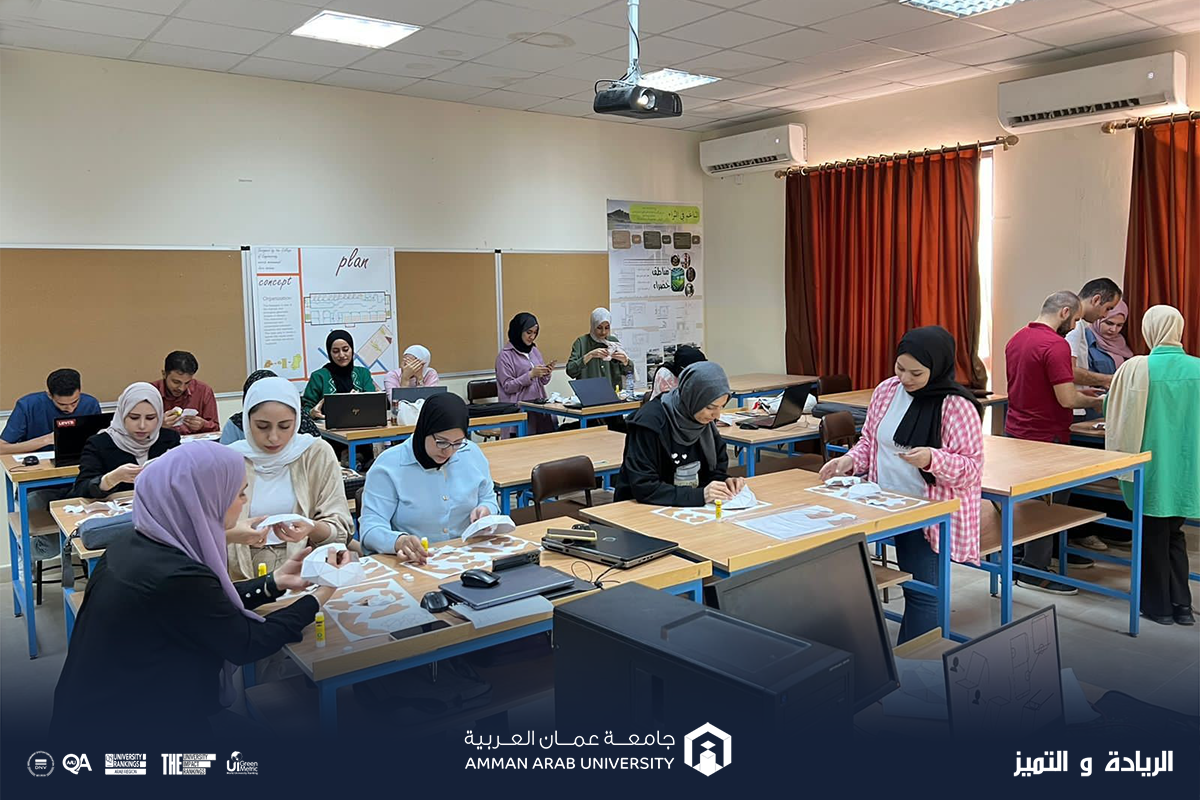 شاركت جامعة عمان العربية ممثلة بالأستاذ الدكتورة حنان احمد رئيسة قسم هندسة العمارة في كلية الهندسة بورشة عمل تدريبية نظمتها شركة Han studio الناشئة المختصة ببحث وتطوير المشاريع الغير تقليدية والتي تعتمد على العمارة الرقمية وبرمجة العمارة، وقد شارك في الورشة (14) طالبا ًوطالبة من القسم حيث استعرضت الورشة بشكل متقدم موضوع (عمارة الطي) Folding Architecture وتطرقت إلى مفاهيم واستخدامات عديده لهذا الموضوع في هندسة العمارة حيث تكمن أهمية الموضوع وقدراته في استخدامه للمشاريع الكبيرة والصغيرة ومن مواد مختلفة قابلة للطي والتشكيل.