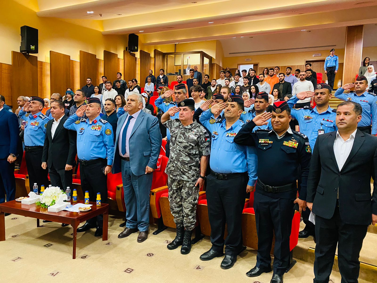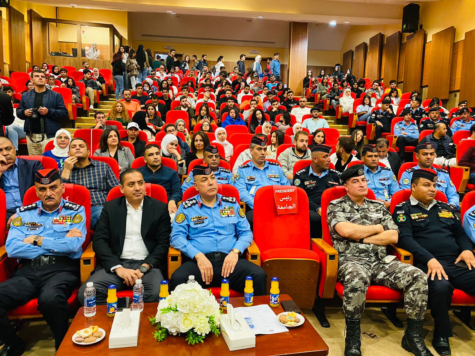 هذا وحضر اللقاء مدير شرطة محافظة مأدبا العقيد منتصر عبيدات ومدير إدارة مكافحة المخدرات العقيد حسان القضاة وقائد درك الوسط العقيد موسى الوديان ومدير دفاع مدني مأدبا المقدم عبدالعزيز السرحان وعدد كبير من طلبة الجامعة والهيئة التدريسية والإدارية.