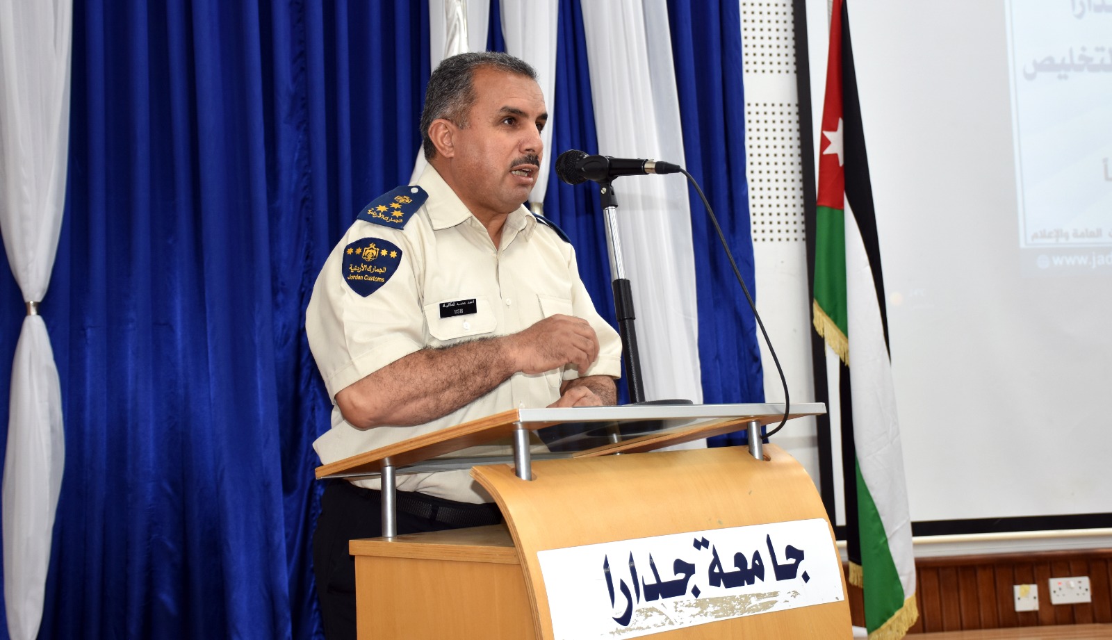 ومن جانبه قدم مساعد دائرة الجمارك العامة العميد جمارك أحمد العكاليك شكره لجامعة جدارا ومجالس حاكميتها على دعمها المستمر لإنشطة الدائرة وبرامجها، واحتضانها فعاليات هذه الدورات، وتذليل كافة الصعاب لإنجاحها وتقديم كل الدعم اللوجيستي المطلوب وقال أن جامعة جدارا هذه الصرح العلمي يعتبر منارة يشار اليها بالبنان، والتي كان لها السبق بين كل الجامعات الحكومية والخاصة بأفتتاح قسم للعلوم الجمركية والضريبية، وتمنى للمشاركين ولأسرة جامعة جدارا التوفيق والنجاح في ظل القيادة الهاشمية الحكيمة.