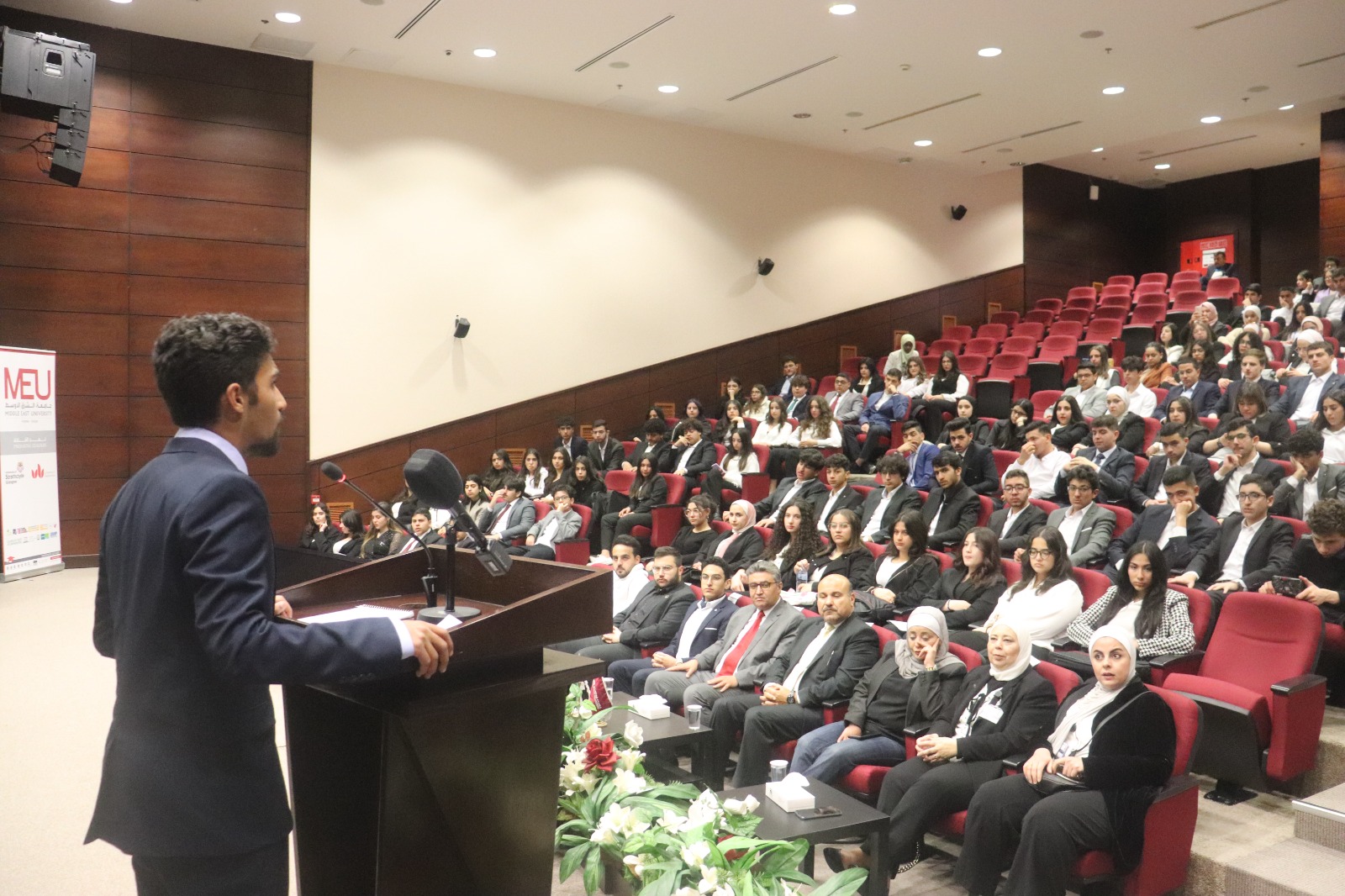 عمون – حاز عددٌ من طلبة مدارس الثانوية العامة والجامعات في الأردن، على فرصة تجربة خوض غمار عمل منظمة الأمم المتحدة في رحاب جامعة الشرق الأوسط من خلال مؤتمر الأمم المتحدة النموذجية (MUN) الذي يتولى الطلبة من خلاله أدوار الدبلوماسيين وممثلي الدول؛ لمناقشة القضايا العالمية، وتطوير الحلول من خلال الدبلوماسية والتفاوض.