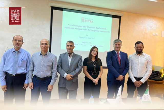 نوقشت في كلية الصيدلة والعلوم الطبية في جامعة البترا رسالة الماجستير المقدمة من الطالبة شروق الطوال، وهي بعنوان: "جسيمات نانويّة مطوّرة من الشيتوزان والسوليوبلس مستجيبة لمؤثرين مزدوجين لاستهداف الخلايا السرطانية" بإشراف الأستاذ الدكتور مياس الريماوي والدكتور ولهان الشاعر.