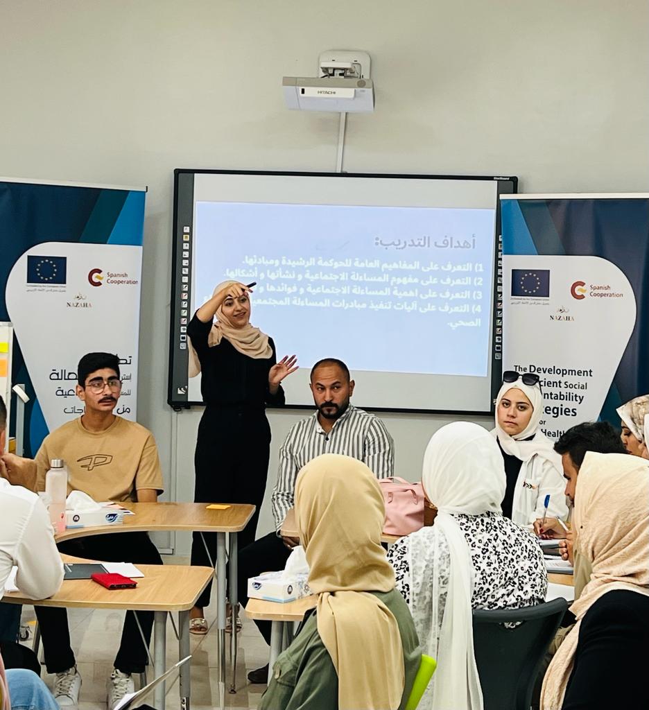 نفذ مركز دراسات التنمية المستدامة والتكنولوجيا في جامعة العلوم والتكنولوجيا الأردنية ورشة عمل تدريبية لأفراد فاعلين في المجتمع المحلي في مبنى مركز زها الثقافي في محافظة إربد، بعنوان " مفاهيم المساءلة المجتمعية وتطبيقاتها في القطاع الصحي" والتي تأتي كنشاط آخر ضمن المرحلة الأولى من مشروع " تطوير استراتيجيات فعالة للمساءلة الاجتماعية من أجل نتاجات صحية أفضل داخل الأردن" الذي يندرج ضمن مشروع " تعزيز المساءلة المجتمعية وتمكين مؤسسات المجتمع المدني من تحقيق الحوكمة الرشيدة" الذي ينفذ بالتعاون مع مركز الحياة- راصد ، كجزء من مشروع نزاهة الممول من الإتحاد الأوروبي والوكالة الإسبانية للتعاون الدولي الإنمائي.