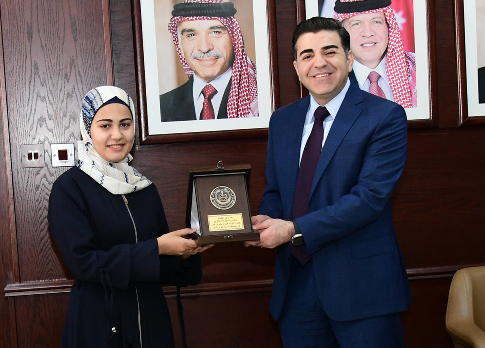 26 أيلول /// كرّم رئيس جامعة العلوم والتكنولوجيا الأردنية الأستاذ الدكتور خالد السالم الطالبة سندس سعيد الصيداوي، من كلية العلوم الطبية التطبيقية، الفائزة بجائزة الشيخة فاطمة بنت مبارك الدولية للقرآن الكريم والتي أقيمت في دولة الإمارات العربية المتحدة، وسط منافسة شديدة مع 60 متسابقة من 50 دولة عربية ودولية.