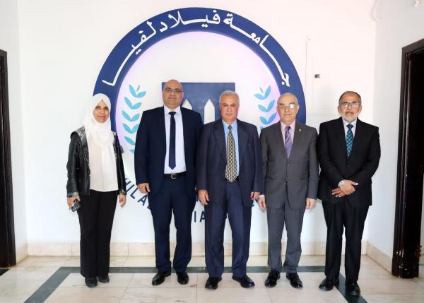 عمون - استقبل الأستاذ الدكتور عبد الله محمد الجراح رئيس جامعة فيلادلفيا وفداً من جمعية معاهد وكليات العلاج الطبيعي في اتحاد الجامعات العربية ممثلاً بالأستاذ الدكتور باسكال البريدي/ عميد معهد العلاج الطبيعي جامعة القديس يوسف لبنان، الأمين العام لجمعية معاهد وكليات العلاج الفيزيائي/ الطبيعي العربية و الأستاذ الدكتور شاكر بو عبدالله أستاذ العلاج الطبيعي جامعة القديس يوسف لبنان/ الأمين العام لجمعية معاهد وكليات العلاج الفيزيائي/ الطبيعي العربية سابقاً. و بحضور كل من الأستاذ الدكتور فدوى الحلايقه/عميد كليه العلوم الطبية المساندة و الاستاذ الدكتور فؤاد عبدالله رئيس قسم العلاج الطبيعي.