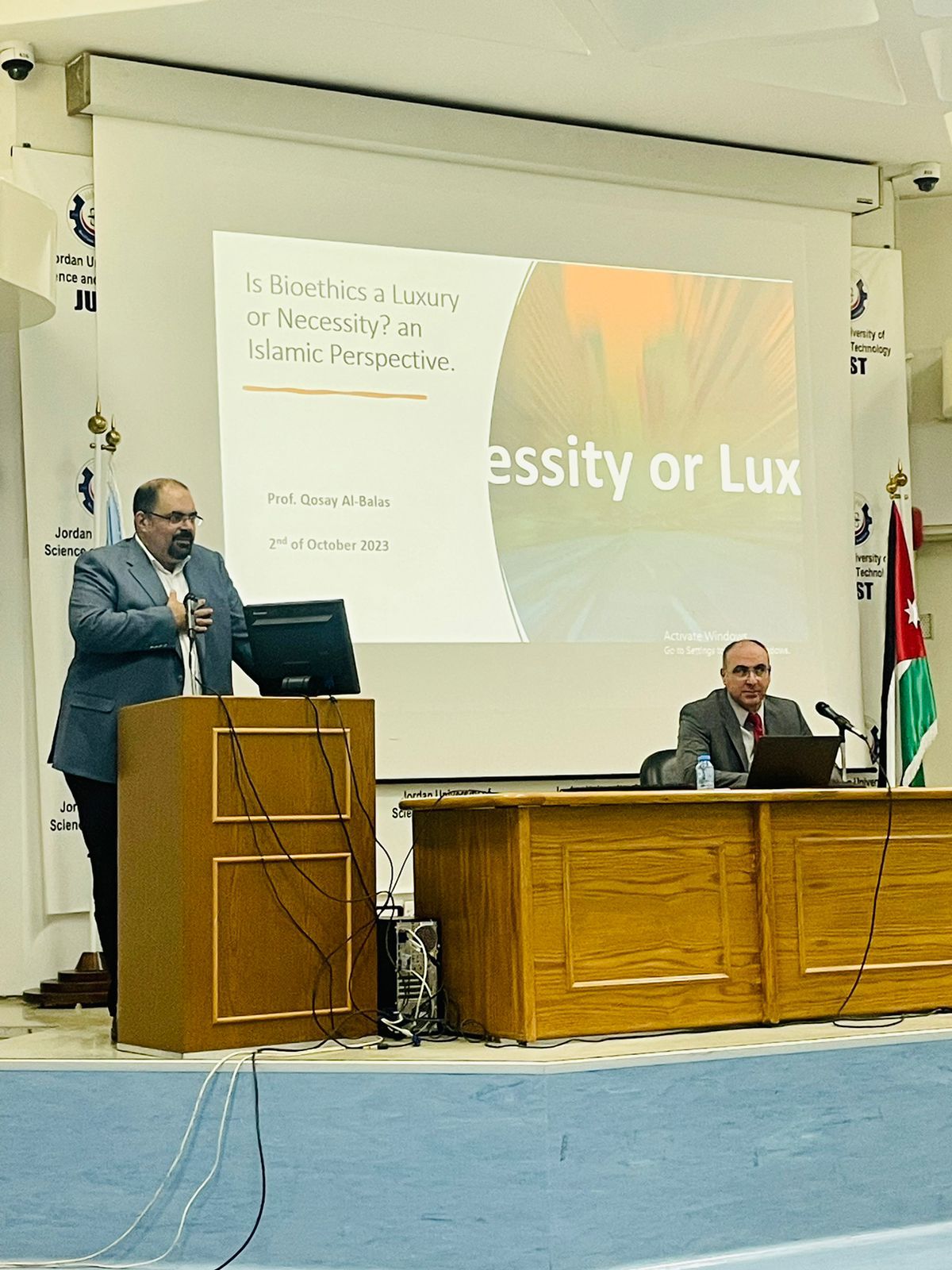 4 تشرين الأول /// نظمت عمادة البحث العلمي في جامعة العلوم والتكنولوجيا الأردنية محاضرة حول "الأخلاقيات الحيوية الإسلامية"، قدمها الأستاذ الدكتور قصي البلص من كلية الصيدلة، بحضور عدد من أعضاء الهيئة التدريسية والطلبة.