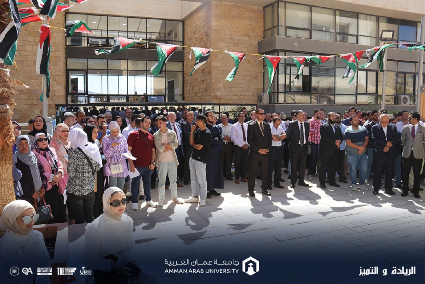 نفذت جامعة عمان العربية صباح اليوم السبت الموافق 14/10/2023 وقفة تضامنية وذلك دعماً لإخواننا في فلسطين الحبيبة ولصمود أهلنا في غزة بحضور رئيس الجامعة الأستاذ الدكتور محمد الوديان ومساعدوه وعمداء الكليات وأعضاء الهيئتين التدريسية والإدارية وجمع غفير من طلبة الجامعة.