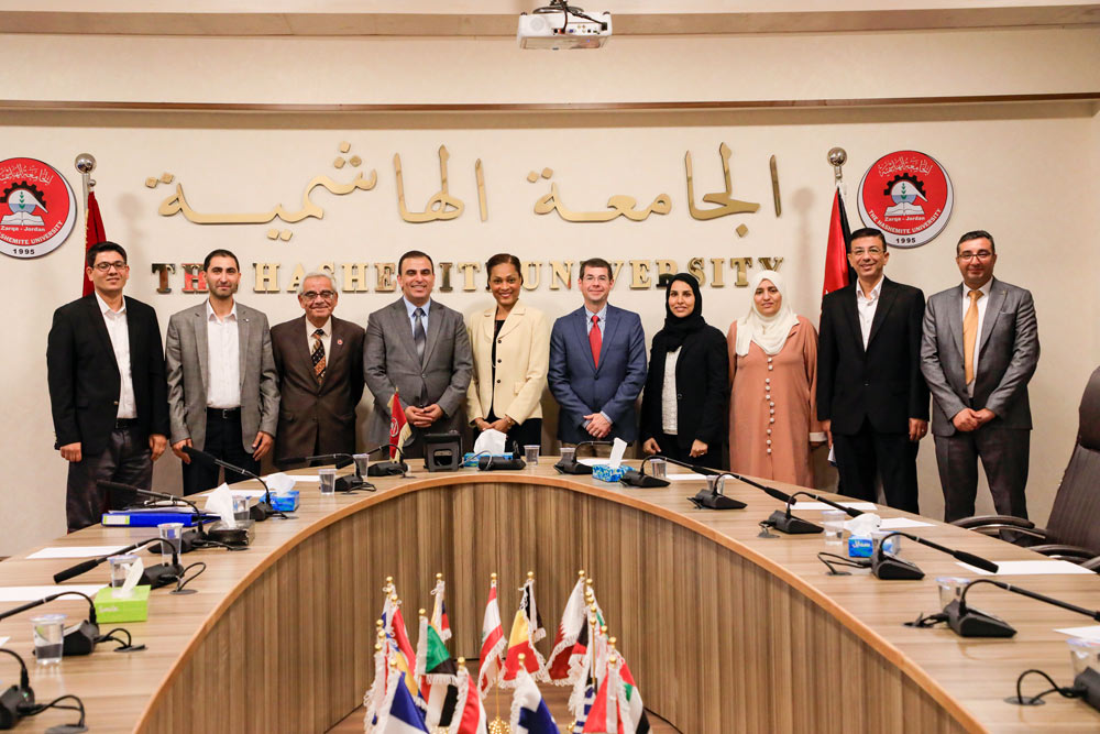 وإلتقى الوفد رئيس الجامعة الهاشمية بالوكالة الأستاذ الدكتور وصفي الروابدة، والأستاذ الدكتور خالد أبوالتين نائب رئيس الجامعة، والأستاذ الدكتور محمد سليمان المشاعله نائب رئيس الجامعة لمناقشة رؤية إدارة الجامعة ورسالتها، ودورها في توفير الاحتياجات التطويرية لكلية التمريض وضمان جودة المخرجات، وتوفير الكفاءات الأكاديميّة والإداريّة والفنيّة، وقدرة الجامعة والكلية على تطوير كفاءة الطلاب في حل المشكلات والتفكير التحليلي وقدرتهم على ربط المعرفة العلمية بالتطبيق العملي.