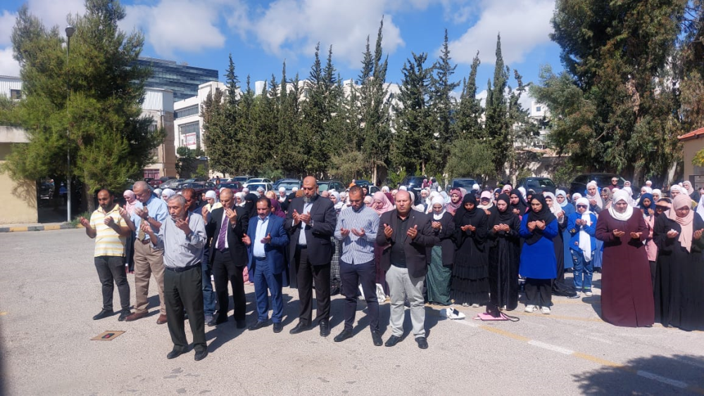 أقامة صلاة الغائب على أرواح شهداء الاهل في قطاع غزة جراء العدوان الاسرائيلي الغاشم في كلية الأميرة عالية الجامعية
