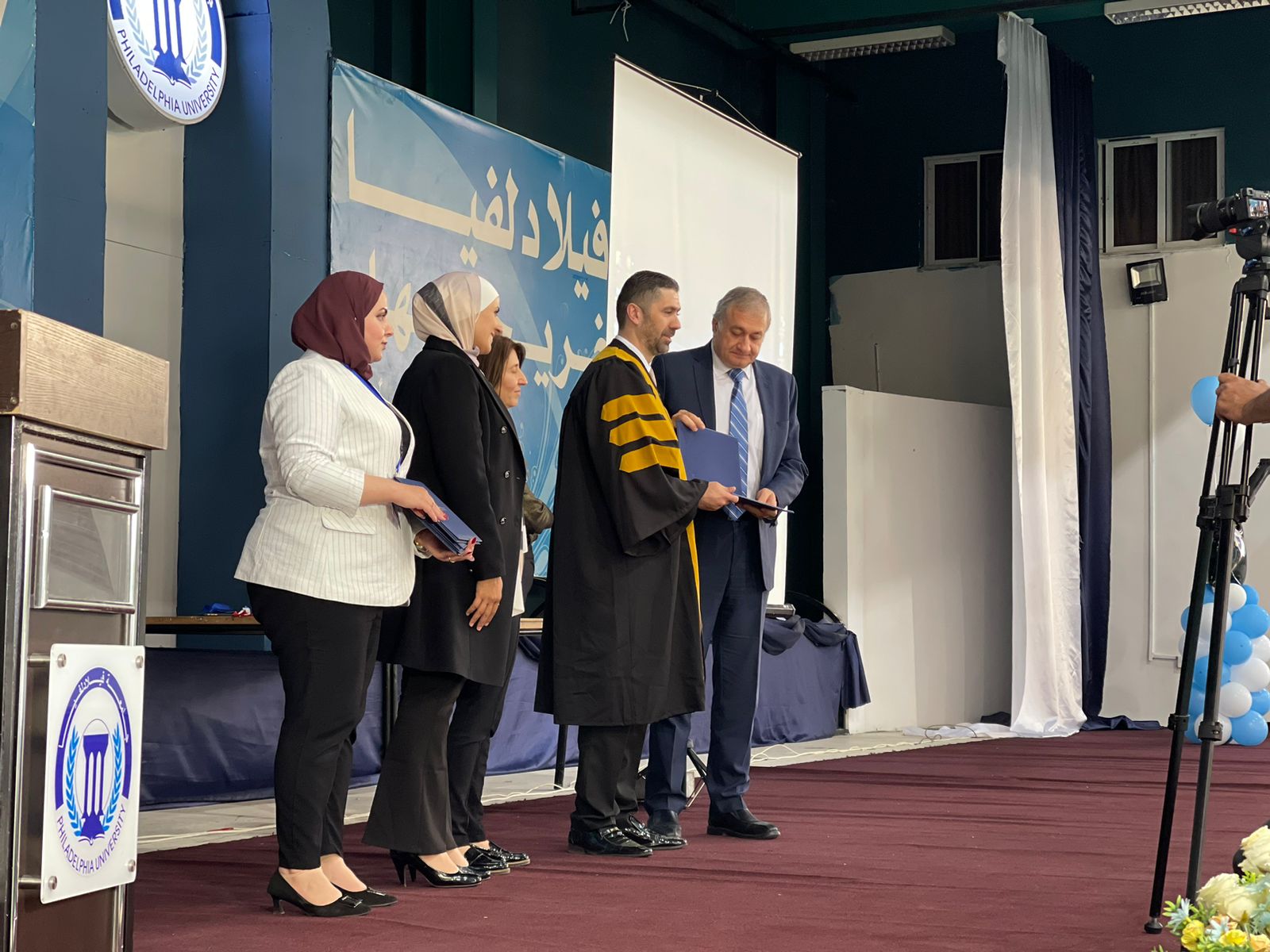 وبالختام قام نائب رئيس جامعة فيلادلفيا بتكريم المحاضرين وتسليم شهادات الدبلوم للطلبة الخريجين.