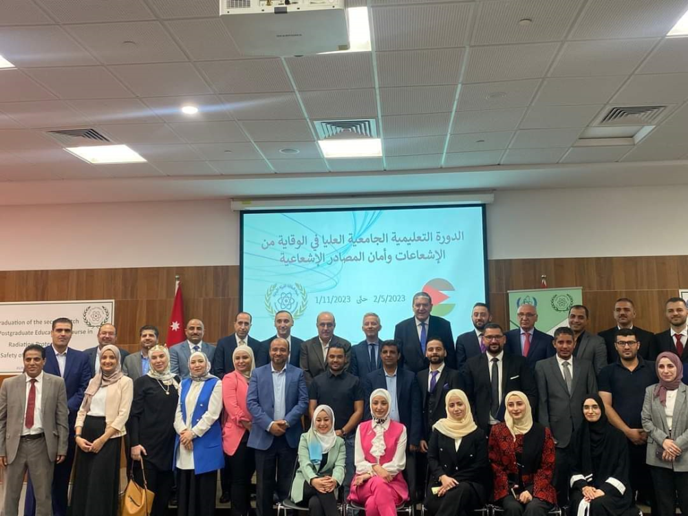 اختتمت في هيئة الطاقة الذرية الأردنية أعمال الدورة التعليمية الجامعية العليا في مجال الوقاية من الإشعاعات وأمان المصادر الإشعاعية بنسختها الثانية يوم الثلاثاء الموافق 31.10.2023. أقامت الهيئة حفل تخريج لـــ 18 مشاركاً من خمس دول عربية بالإضافة للأردن. امتدت الدورة لمدة ستة شهور شملت التعليم النظري والعملي لمواضيع الوقاية الإشعاعية بهدف تأهيل ضباط وقاية إشعاعية في مختلف البلدان العربية وذلك بالتعاون ما بين الهيئة والوكالة الدولية للطاقة الذرية.