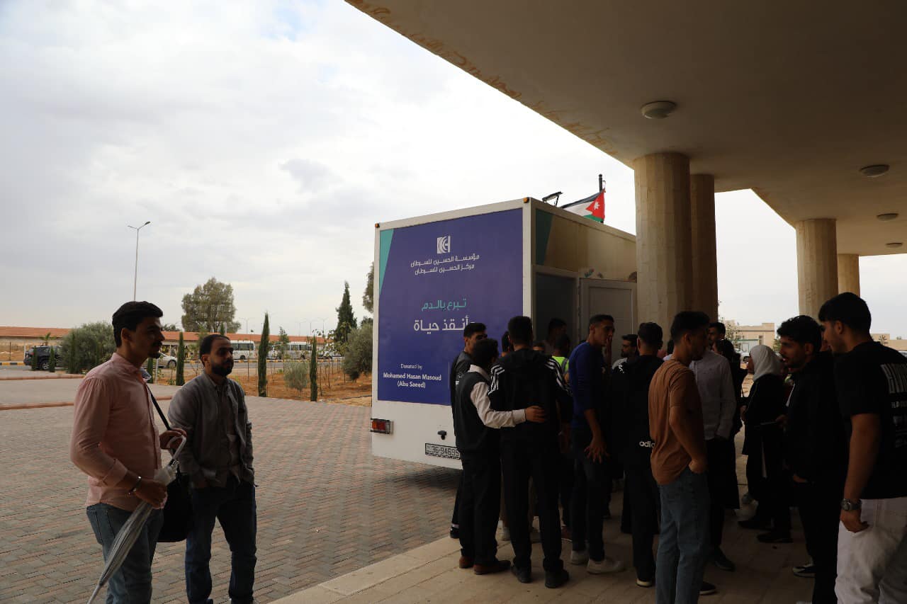 نظمت كلية الاعمال في جامعة ال البيت بالتعاون مع فريق عربكم التطوعي ومركز الحسين للسرطان حملة للتبرع بالدم دعما للاشقاء في قطااع غززة الذين يتعرضون للعددوان الااسر ائيليي الغاشم