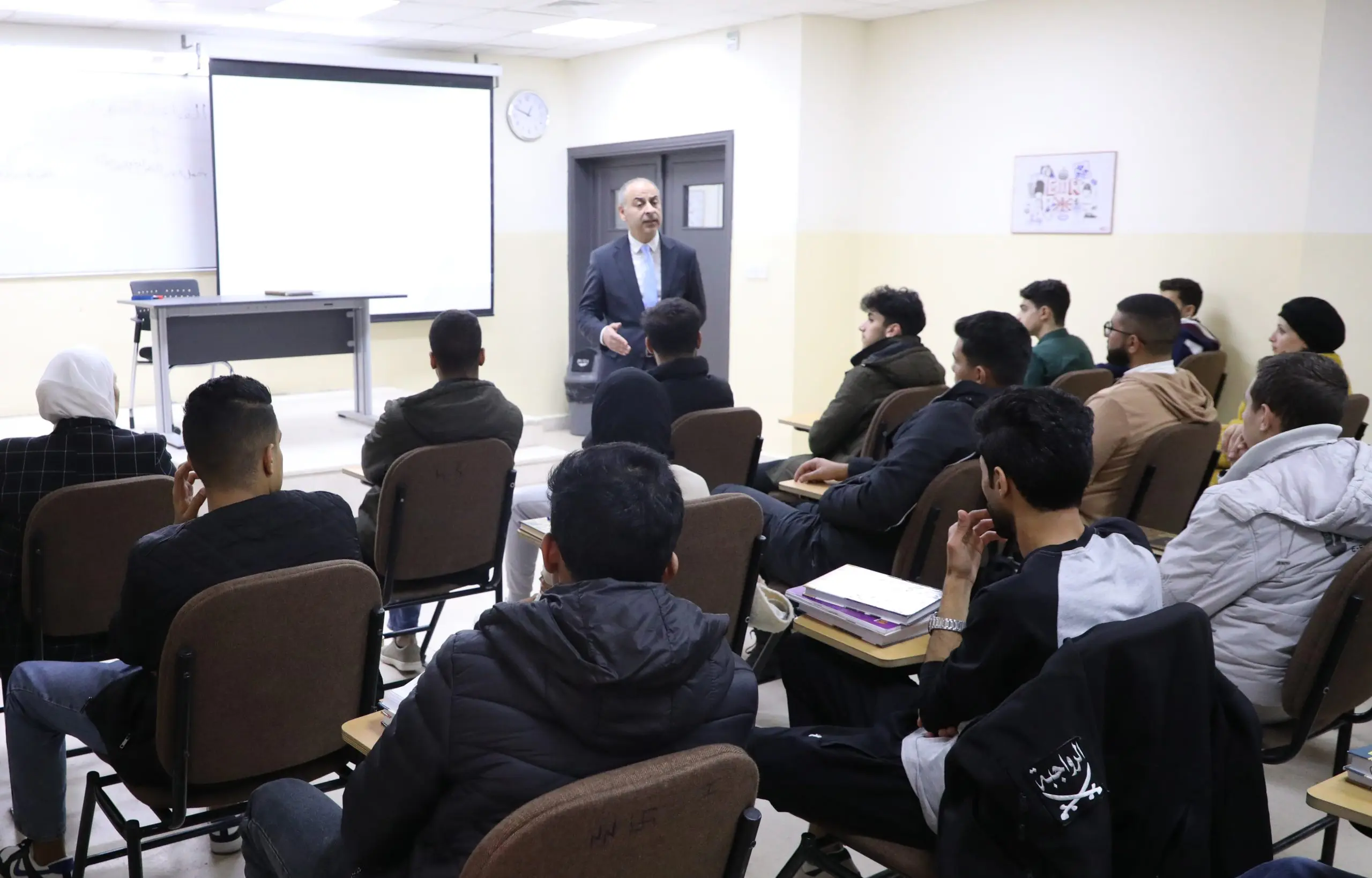 جاء ذلك خلال لقاءه طلبة الكلية المستجدين، بحضور عميد شؤون الطلبة الدكتور أيمن الخزاعله، وأعضاء الهيئة التدريسية، قائلًا إن هذا اللقاء يأتي لتوجيه قدرات الطلبة الذين سيشكلون ملامح عالمٍ يتمتع بالعدالة والازدهار، حيث أن هناك تفاعلًا هامًا سيدركه الطلبة بين مهنة المحاماة كحارس للنظام المجتمعي، ونسيج الحضارة الإنسانية.