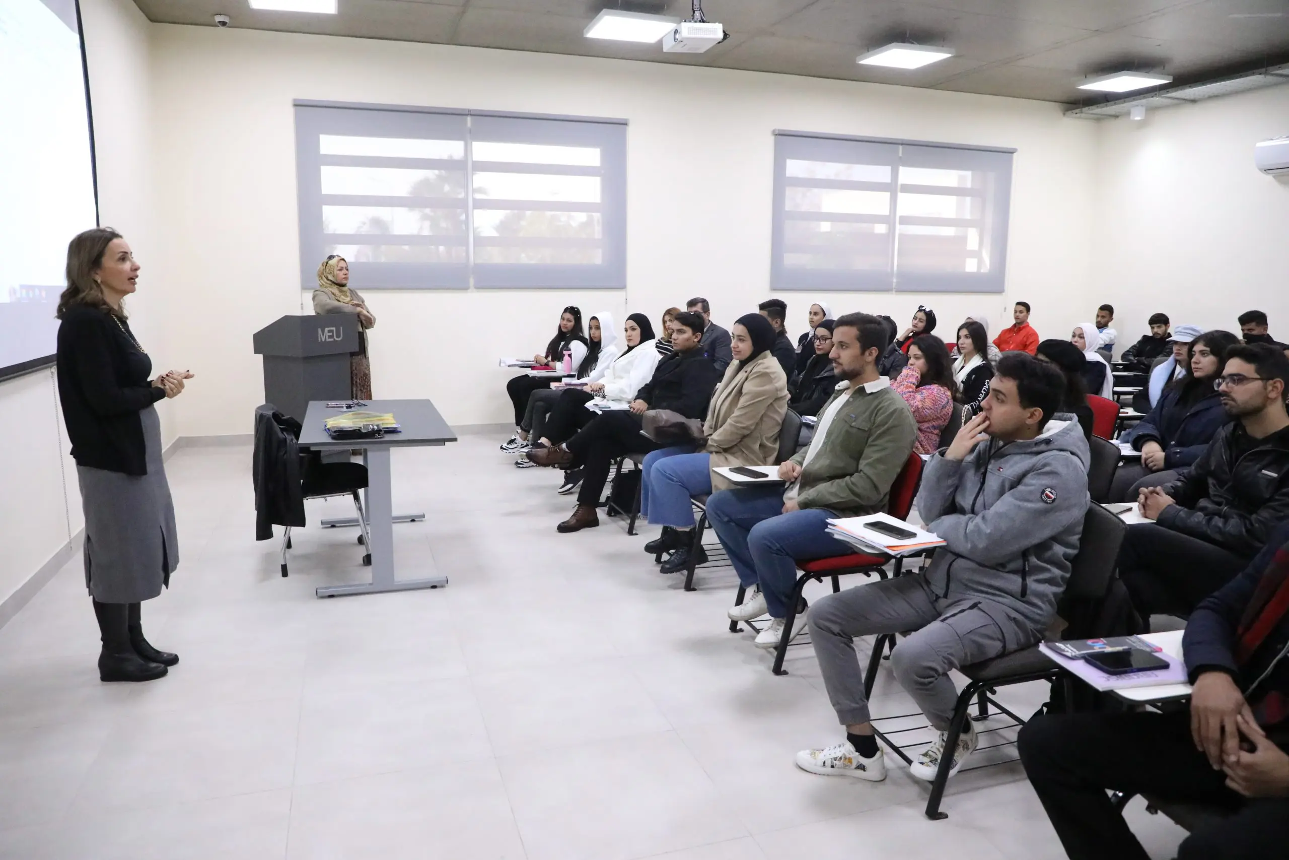 عمّان – ناقشت عميدة كلية الإعلام في جامعة الشرق الأوسط الدكتورة حنان الشيخ، طلبة الكلية المستجدين حول نوع التجربة الدراسية التي سيقبلون عليها مع ما توفره لهم من مسارات عملية في مختبرات التصميم والتصوير، وغرف صناعة المؤثرات السينمائية.