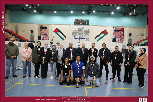 برعاية معالي الأستاذ الدكتور محمد حامد رئيس الجامعة ، نظمت عمادة شؤون الطلبة / شعبة النشاط الرياضي حفل تكريم للطلبة الفائزين في بطولة الريشة الطائرة والشطرنج تحضيرًا لبطولات الاتحاد الرياضي للجامعات الأردنية، حيث أقيمت البطولة في الصالة الرياضية من الفترة (19-28/11/2023) بمشاركة 71 طالب وطالبة للعبة الريشة الطائرة و48 طالب وطالبة للعبة الشطرنج، وتخلل الحفل المباراة النهائية للريشة الطائرة طلاب وطالبات، وتوزعت نتائج البطولة على النحو الآتي: