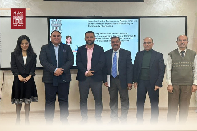 نوقشت، يوم الثلاثاء 5 ديسمبر 2023، في كلية الصيدلة والعلوم الطبية في جامعة البترا، رسالة ماجستير في العلاج الدوائي السريري للطالبة الصيدلانية علياء صالح، شملت دراستين بعنوان (التحقق من أنماط وملاءمة الأدوية النفسية الموصوفة في صيدليات المجتمع، وتقييم تصورات الأطباء وتوقعاتهم فيما يتعلق بدور صيادلة المجتمع في خدمات الصحة النفسية ومستوى التعاون مع الصيادلة).