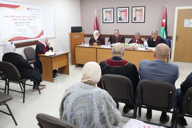 مناقشة رسالة ماجستير في “الشرق الأوسط” بعنوان: دور مناهج اللغة العربية للمرحلة الأساسية العليا في تعزيز قيم المواطنة من وجهة نظر المعلمين