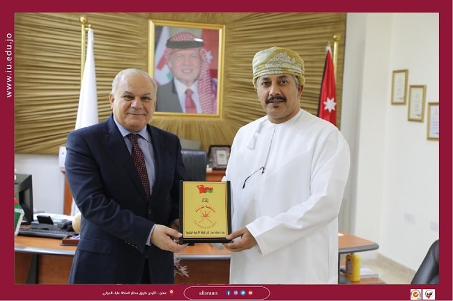استقبل معالي الأستاذ الدكتور محمد موسى حامد رئيس الجامعة في مكتبه سعادة الشيخ فهد العجيلي سفير سلطنة عمان في الأردن ، ويرافقه سعادة السيد سالم الوهيبي (السكرتير أول المحلق الثقافي العماني ) ، والدكتور عبدالله عبيدات .