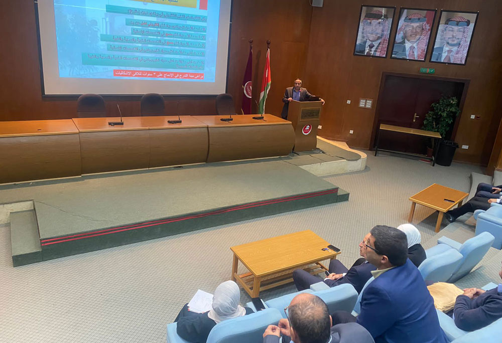 وتحدث أ.د. محمود صمادي عميد التطوير الاكاديمي والتواصل الدولي عن اهمية اعادة هيكلة الخطط الدراسية لجميع البرامج في الجامعة بما يتناسب مع متطلبات إدماج التعلم الإلكتروني فيها ومتطلبات البرامج المختلفة والتاكيد على اعادة تصميم واعتماد محتوى تعليمي ملائم لمواد التعلم الإلكتروني الغير متزامن واستخدام أساليب التعلم الحديثة المناسبة.