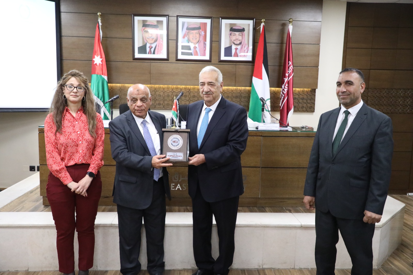 رعى أعمال الورشة رئيس مجلس أمناء جامعة الشرق الأوسط العين الدكتور يعقوب ناصر الدين، بحضور رئيسة الجامعة الأستاذة الدكتورة سلام المحادين، وعميد كلية الحقوق، مدير مركز الاعتماد والجودة والمعلومات الأستاذ الدكتور أحمد اللوزي.