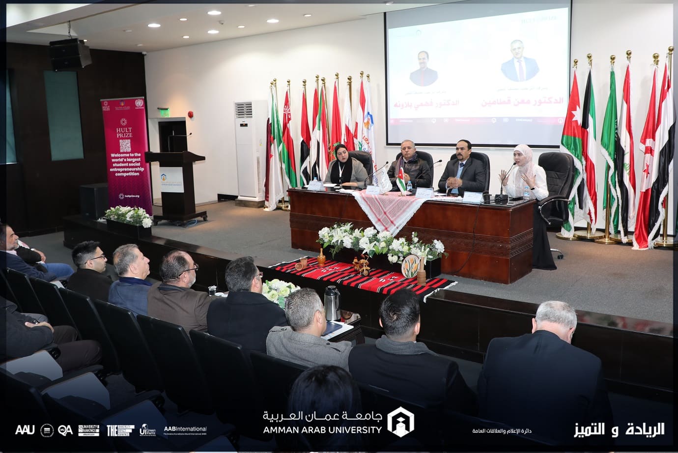 تحت رعاية رئيس جامعة عمان العربية الأستاذ الدكتور محمد الوديان وبتنسيق من مركز الإبداع والابتكار وريادة الأعمال في الجامعة قام فريق هالت برايز Hult Prize / جامعة عمان العربية بقيادة مدير الحرم الجامعي روزا ساكو بتنظيم الحدث الثاني "Global Minds, Local Roots: An Entrepreneurial Talk" بلمسة من التراث و الثقافة الأردنية وبحضور مساعدو رئيس الجامعة، حيث تم استضافة كل من: معالي الدكتور معن القطامين الرئيس التنفيذي لشركة المنصة الرقمية لتطوير ريادة الأعمال، والسيد عمر حجازي مدير مكتب وزير الاقتصاد الرقمي والريادة، والدكتور فهمي البلاونة المدير التنفيذي لشركة المتحدة الإنتاج التعليمي، ورائد الأعمال الأردني السيد حلمي عساف، بالإضافة إلى أعضاء الفريق الوطني للهالت برايز ممثلاً بالسيد محمد زكريا و السيد عبادة العبدالات، وجمع من طلبة الجامعة وأعضاء الهيئتين التدريسية والإدارية.