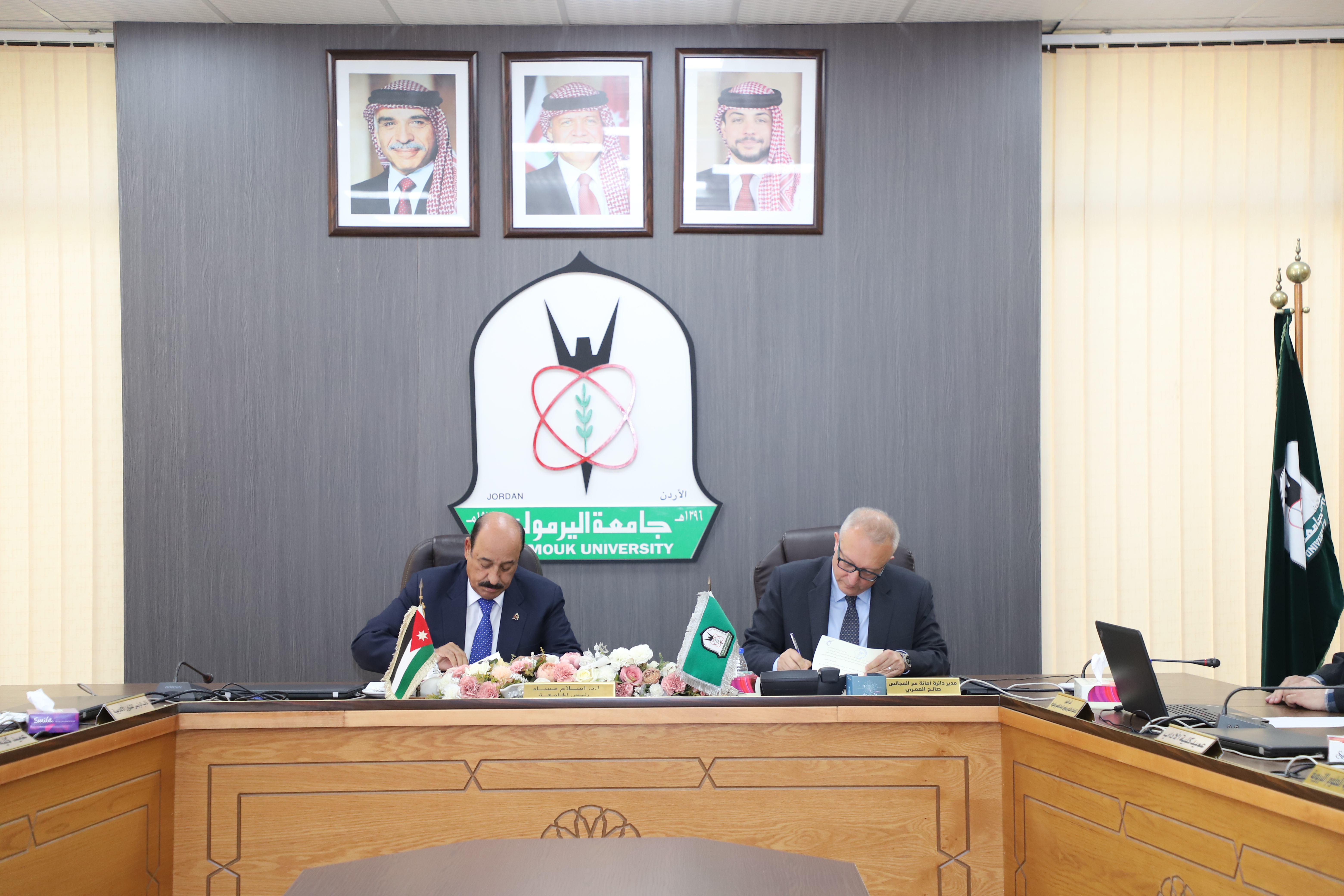 وقع رئيس جامعة اليرموك الدكتور إسلام مسّاد ورئيس المجلس التنفيذي لمؤسسة المتقاعدين العسكريين والمحاربين القدماء اللواء الركن المتقاعد إسماعيل الشوبكي، اتفاقية حماية وحراسة بين الجانبين.
