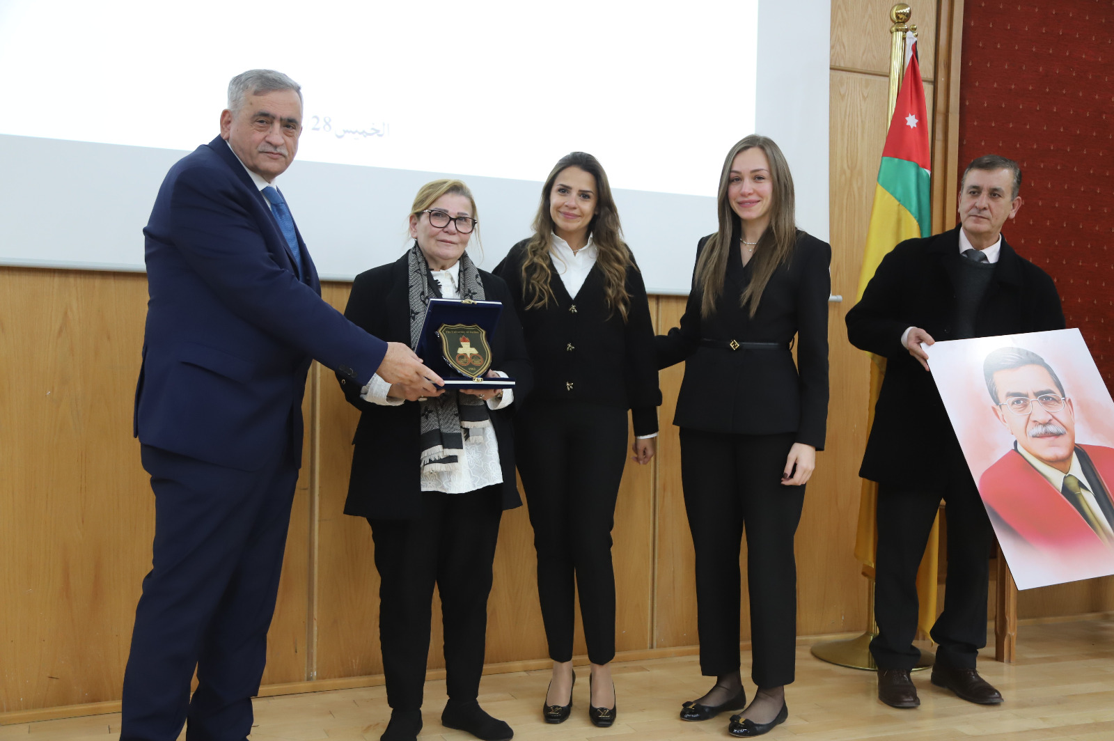 وفي نهاية التكريم، الذي تخلله عرض مقطع مصوّر يستذكر مناقب الفقيد وقيمه النبيلة، منحت الجامعة ممثلة برئيسها الدكتور نذير عبيدات ذوي المرحوم درعًا تذكاريًّا للجامعة تكريمًا للراحل وتقديرًا وعرفانًا على ما قدمه خلال مسيرتة العلمية.