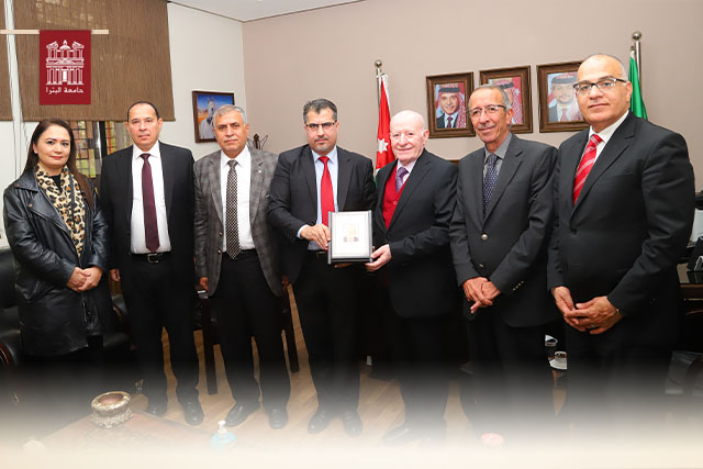 وسلم عبد الرحيم درع الجامعة التكريمي إلى الخصاونة خلال لقائه في مكتبه في الجامعة، مؤكدًا حرص الجامعة على تزويد طلبتها بالمستجدات في مجال تخصصهم، وتدريبهم على الواقع العملي لتخصصاتهم.
