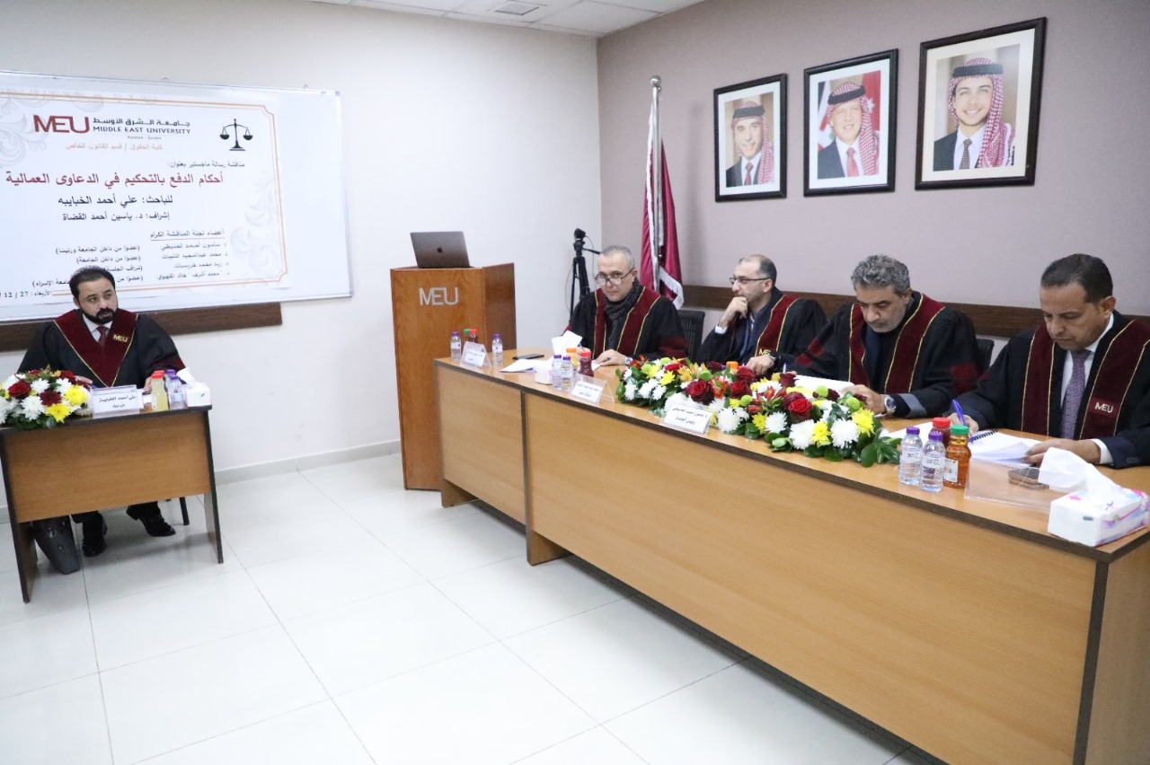 مناقشة رسالة ماجستير في “الشرق الأوسط” بعنوان: أحكام الدفع بالتحكيم في الدعوى العمالية