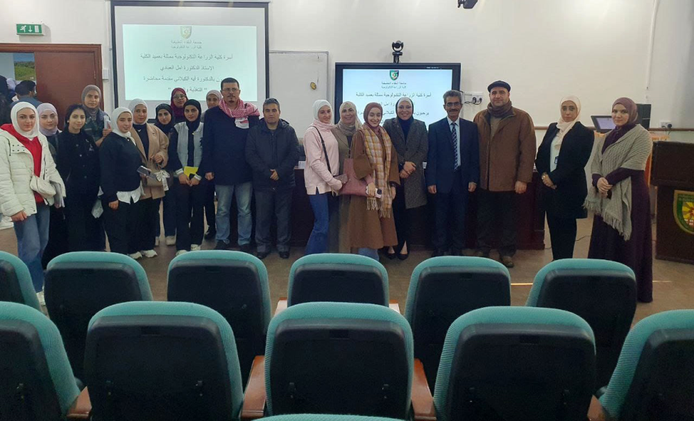 تحقيقا لرؤية جامعة البلقاء التطبيقية و كلية الزراعة التكنولوحية في اثراء خبرات الطلبة وربط دراستهم الاكاديمية بالتطبيقات العملية وخدمة المجتمع المحلي وبتوجيه من عطوفة رئيس الجامعة الاستاذ الدكتور احمد فخري العجلوني وبحضور الاستاذ الدكتورة امل العبادي نظم قسم التغذية والتصنيع الغذائي في كلية الزراعة التكنولوجية محاضرة بعنوان "التغذية والجمال" قامت بتقديمها الدكتورة ايه الكيلاني بحضور أعضاء الهيئة التدريسية والإدارية وطلبة قسم التغذية والتصنيع الغذائي حيث تحدثت الدكتورة ايه الكيلاني عن الرابط الوثيق بين التغذية السليمة والجمال وانعكاسها على الجمال الداخلي أيضا للإنسان.