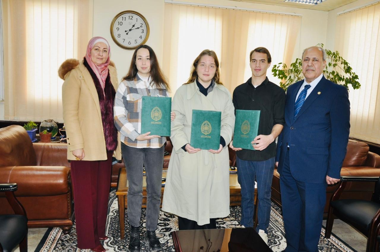 خرج رئيس جامعة الطفيلة التقنية الأستاذ الدكتور بسام زعل المحاسنة اليوم طلبة الوفد الروسي لتعلم اللغة العربية لغير الناطقين بها، بحضور مدير مكتب العلاقات والمشاريع الدولية الدكتورة بثينة العبيدين.