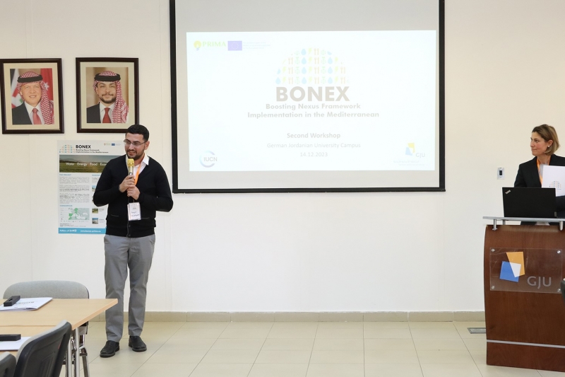 استضافت الجامعة الألمانية الأردنية ورشة العمل الثانية لأصحاب المصلحة لمشروع "تعزيز تنفيذ إطار الترابط في البحر الأبيض المتوسط" (BONEX). تم تنظيم ورشة العمل من قبل الجامعة الألمانية الأردنية والاتحاد الدولي لحماية الطبيعة (IUCN-ROWA). يتم تمويل مشروع BONEX من قبل مؤسسة الاتحاد الأوروبي "الشراكة من أجل البحث والابتكار في منطقة البحر الأبيض المتوسط (PRIMA)". في الأردن، يركز مشروع بونكس بشكل خاص على حوض وادي الموجب، ولديه طموح لاستكشاف وتطوير حلول محددة تعزز ربط الحوكمة بالممارسة للتغلب على الحواجز التي تحول دون الترابط بين المياه والطاقة والغذاء والنظام الإيكولوجي والسياسات.