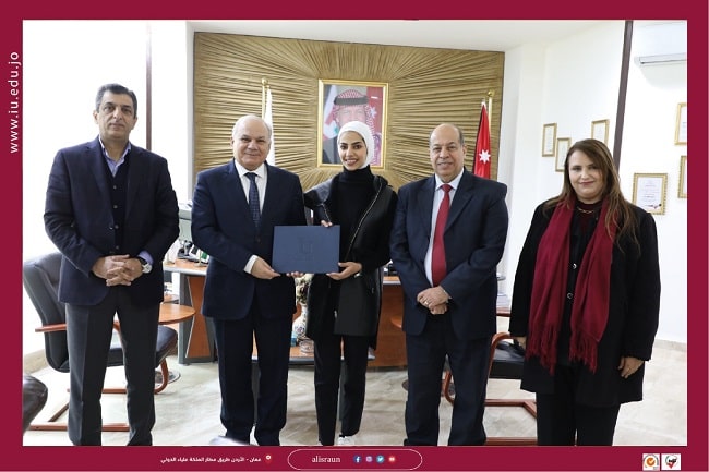 كرم معالي الأستاذ الدكتور محمد حامد رئيس الجامعة الطالبة رؤى عطوه الهروط (كلية الحقوق) وذلك لمشاركتها في المشروع الوطني لتأهيل القادة الشبابية – برنامج نشامى 2023 لاختيارها ضمن (25) قائد وقائدة ضمن الفوج الأول على مستوى المملكة من ضمن (400) مرشح تنافسوا ما بين الجامعات، وبحضور عميد شؤون الطلبة، وعميد كلية الحقوق ورئيس قسم القانون العام.