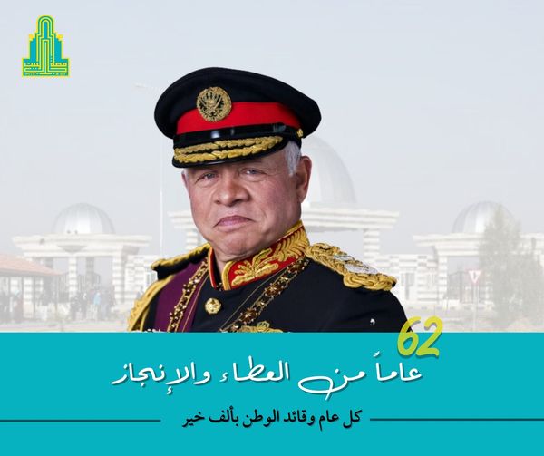 رئيس الجامعة الأستاذ الدكتور أسامه نصير والهيئة التدريسية والإدارية والطلبة، يرفعوا أسمى آيات التهاني والتبريكات إلى مقام حضرة صاحب الجلالة الملك عبدالله الثاني ابن الحسين المعظم بمناسبة عيد ميلاد جلالته الثاني والستين، السعيد على قلب كل أردني وأردنية فيها نجدد البيعة والولاء لعرشكم المفدى.
