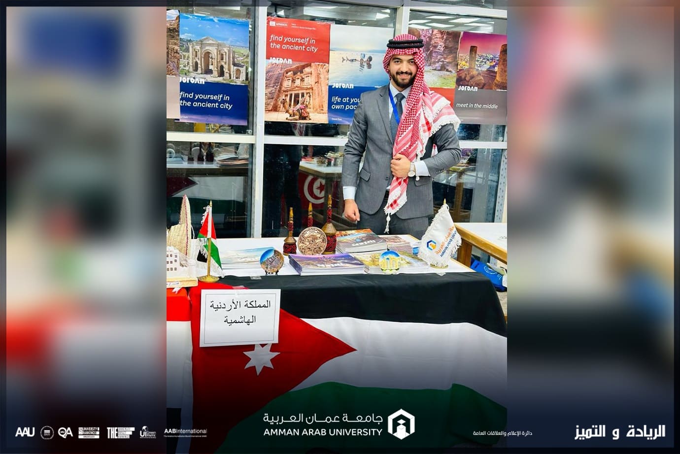 حيث مثل جامعة عمان العربية في فعاليات البرنامج الطالب محمد عماد العزام من كلية القانون وذلك بتنسيب ومتابعة من عميد شؤون الطلبة الأستاذ الدكتور خالد بني حمدان، وبمشاركة 200 طالب وطالبة من 20 دولة عربية، وتعد هذه المشاركة إحدى المشاركات التي تأتي ضمن الأنشطة اللامنهجية التي تحرص عمادة شؤون الطلبة في جامعة عمان العربية على استمرارية المشاركة بها والتي تعمل على صقل شخصية طلبتها من خلال إطلاعهم على تجارب الآخرين في الجامعات العربية لتنميتهم فكرياً وريادياً وتنمية القدرات الإبداعية لديهم.