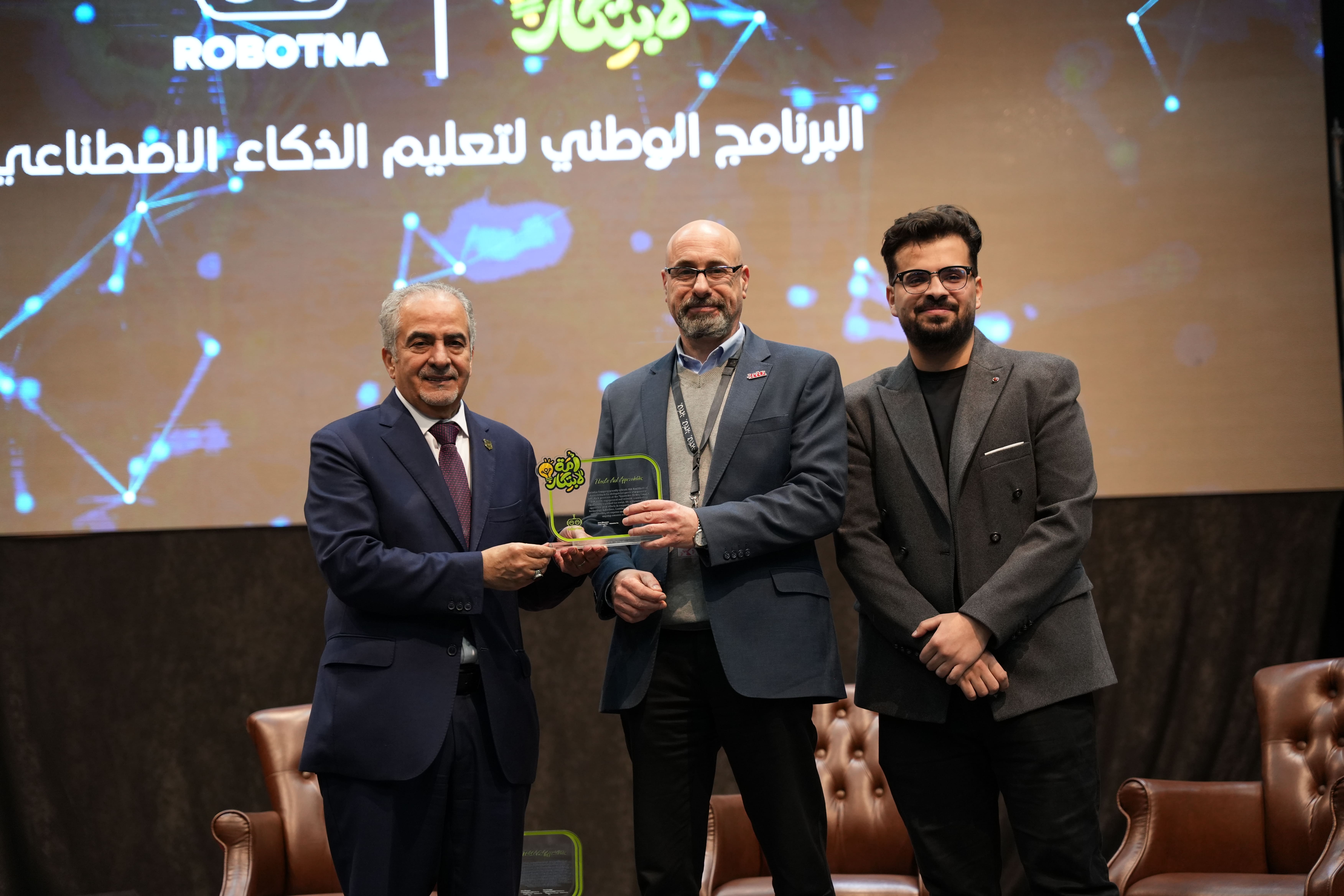 أقامت شركة روبوتنا الحفل الختامي لفعاليات البرنامج الوطني لتعليم الذكاء الاصطناعي ضمن قمة أمة الإبتكار في رحاب جامعة عمان الأهلية وتحت رعاية كريمة من معالي وزير الاقتصاد الرقمي والريادة. هذا وشارك في الحفل أكثر من 2000 طالب أردني من مختلف المحافظات، بما في ذلك أكبر المدارس الدولية، بالإضافة إلى المدارس الخاصة والحكومية من شتى المناطق والذين شاركوا في فعاليات البرنامج المختلفة. وأشار أ.د. ساري حمدان - رئيس جامعة عمان الأهلية خلال كلمة ألقاها عن سعادته باستضافة هذه الفعالية التي تهدف إلى تعزيز الوعي بأهمية التكنولوجيا والابتكار وتشجيع الطلاب على الاهتمام بمجال الذكاء الاصطناعي. وقال إن جامعة عمان الأهلية تدرك أن الذكاء الاصطناعي سيكون محركًا للتطور في المستقبل، وتسعى لتطوير قدرات الشباب في هذا المجال. وقال المؤسس والرئيس التنفيذي لشركة “روبوتنا” جاسر الحراسيس: “إن الشركة فتحت باب التسجيل للاستفادة من هذه الفرصة أمام المدارس الخاصة والحكومية والجهات التعليمية في مختلف أنحاء المملكة للاشتراك في أمة الابتكار المخصصة للطلاب من الفئات العمرية من 13-16 سنة”. وقال الحراسيس: “أن شركة روبوتنا قامت بتمويل هذا البرنامج بشكل كامل من باب المسؤولية الاجتماعية للشركة ومساهمة منها لدعم الصغار واليافعين للتعلم والمنافسة مع أقرانهم على مستوى العالم في مجال التقنية والروبوت والذكاء الاصطناعي”. وفي نهاية الحفل تم الإعلان عن الفائزين الذين تأهلوا للمرحلة النهائية في المسابقة وسيمثلون الأردن على مستوى العالم حيث حصلت مدرسة زبدا الوسطية للبنين على لقب بطل الأردن لهذا العام وستحصل المدرسة على جائزة تشمل تجهيز مختبر روبوت وذكاء اصطناعي في المدرسة وفازت مدرسة الرضوان - بنات على لقب وصيف البطل.