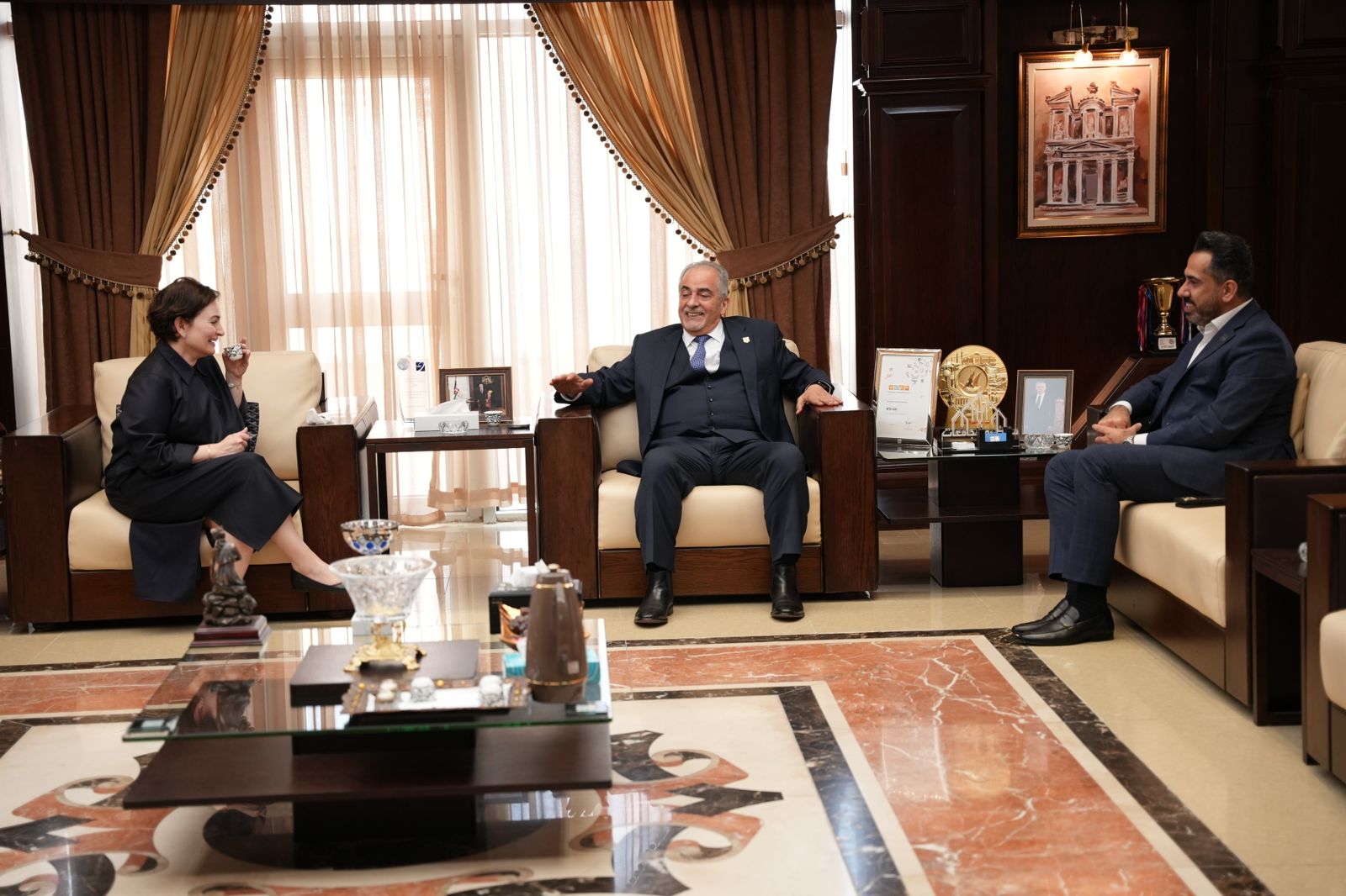 استقبل رئيس جامعة عمان الأهلية الأستاذ الدكتور ساري حمدان ، ممثلة معهد أونيل لقانون الصحة الوطني والعالمي التابع لجامعة جورج تاون الأمريكية الدكتورة غيداء الجبوري، بحضور نائب الرئيس لشؤون العلاقات الدولية والجودة الأستاذ الدكتور أنس السعود. ورحب الدكتور حمدان بهذه الزيارة وبالاهتمام للتعاون مع جامعة عمان الاهلية، واكد استعداد الجامعة للتعاون مع معهد أونيل وجامعة جورج تاون. وأبدت الدكتورة غيداء سعادتها بهذه الزيارة مؤكدة اهتمامها بالتعاون مع جامعة عمان الأهلية من خلال البحث العلمي المشترك وإطلاق مجموعة من البرامج والمبادرات التعليمية المتعلقة بمجالات الصحة العامة والقوانين التي تنظم المجالات الصحية في الوطن العربي والعالم. واوضح الدكتور أنس السعود أن الجامعة تولي البحث العلمي التطبيقي اهتماماً خاصاً لما له من أثر في تجويد المعرفة العلمية والاجتماعية، موضحاً أن جامعة عمان الأهلية كانت سباقة في هذا المجال من خلال تأسيسها لمركز الحوراني للبحوث العلمية التطبيقية والذي يعمل مع العديد من أهم الباحثين المتخصصين بالإضافة إلى المراكز البحثية العالمية، لذا أبدى جاهزية المركز للبدء في التعاون المشترك مع معهد أونيل لإجراء مجموعة من الأبحاث والدراسات المشتركة.
