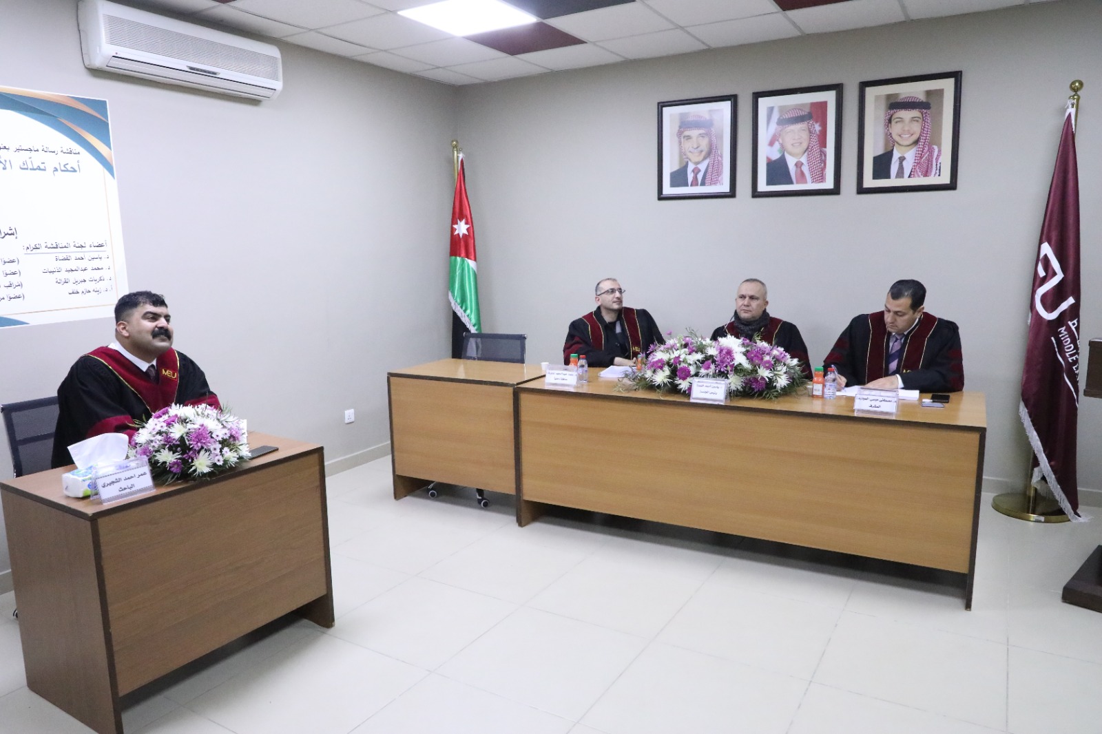 مناقشة رسالة ماجستير في “الشرق الأوسط” بعنوان: أحكام تملك الأشخاص الحكميين للعقارات وفقاً لقانون الملكية العـقارية الأردني.