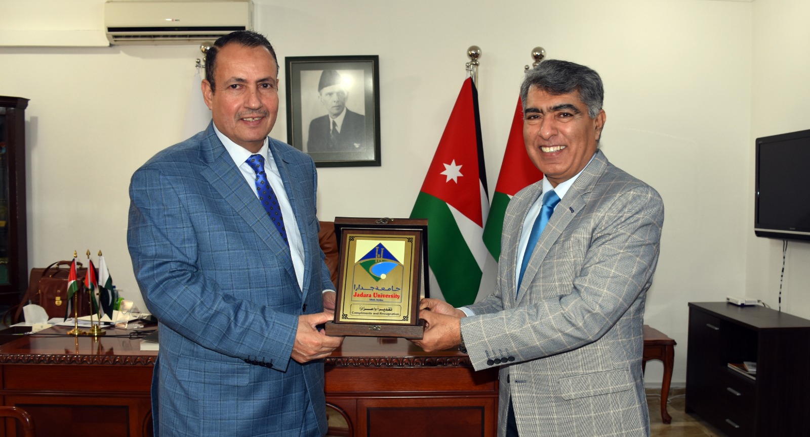وفد من جامعة جدارا برئاسة الزبون يلتقي السفير الباكستاني في عمّان
