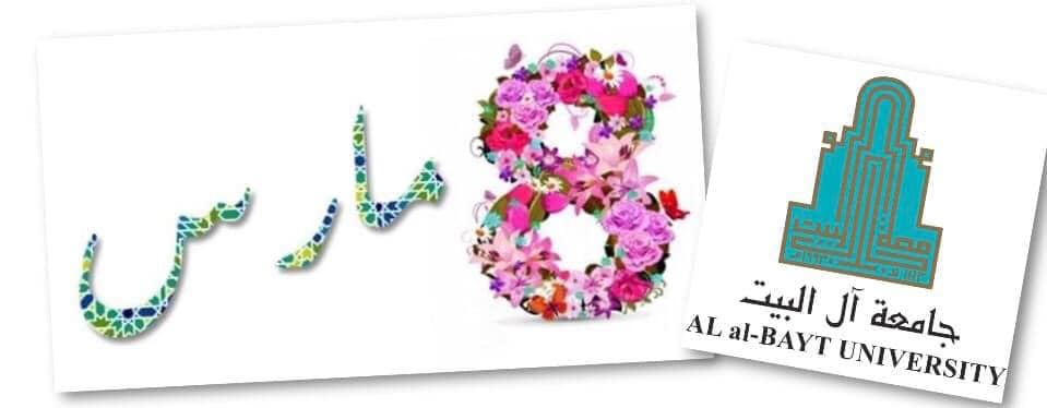 يتقدم رئيس جامعة آل البيت الأستاذ الدكتور أسامه نصير، من المرأة الاردنية بشكل عام ومن الزميلات العاملات وطالبات جامعة آل البيت، بأعطر التهاني والتبريكات بمناسبة يوم المرأة العالمي والذي يصادف الثامن من آذار.