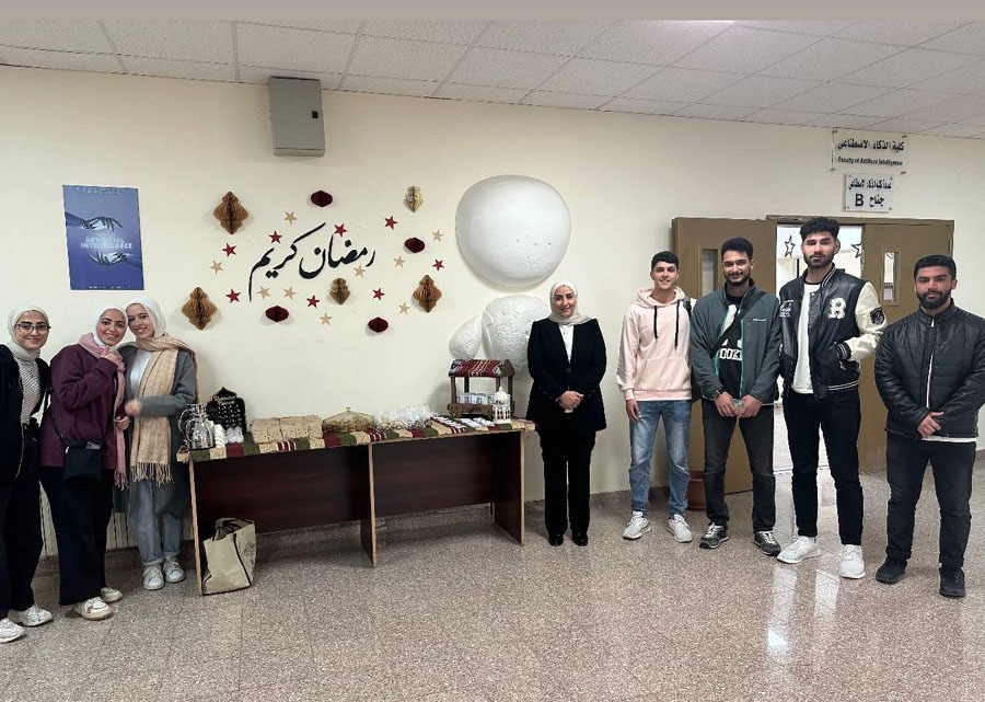 ضمن الفعاليات والأنشطة الإبداعية الطلابية التي تقيمها عمادة كلية الذكاء الاصطناعي قام مجموعة من طلبة علم البيانات بمبادرة خيرية من خلال تزيين حرم الكلية وتوزيع التمور وبعض الهدايا الرمزية والقهوة العربية الأردنية احتفالاً بشهر الرحمة والغفران (شهر رمضان المبارك)، وتحت إشراف من إدارة الشؤون الطلابية في الكلية.