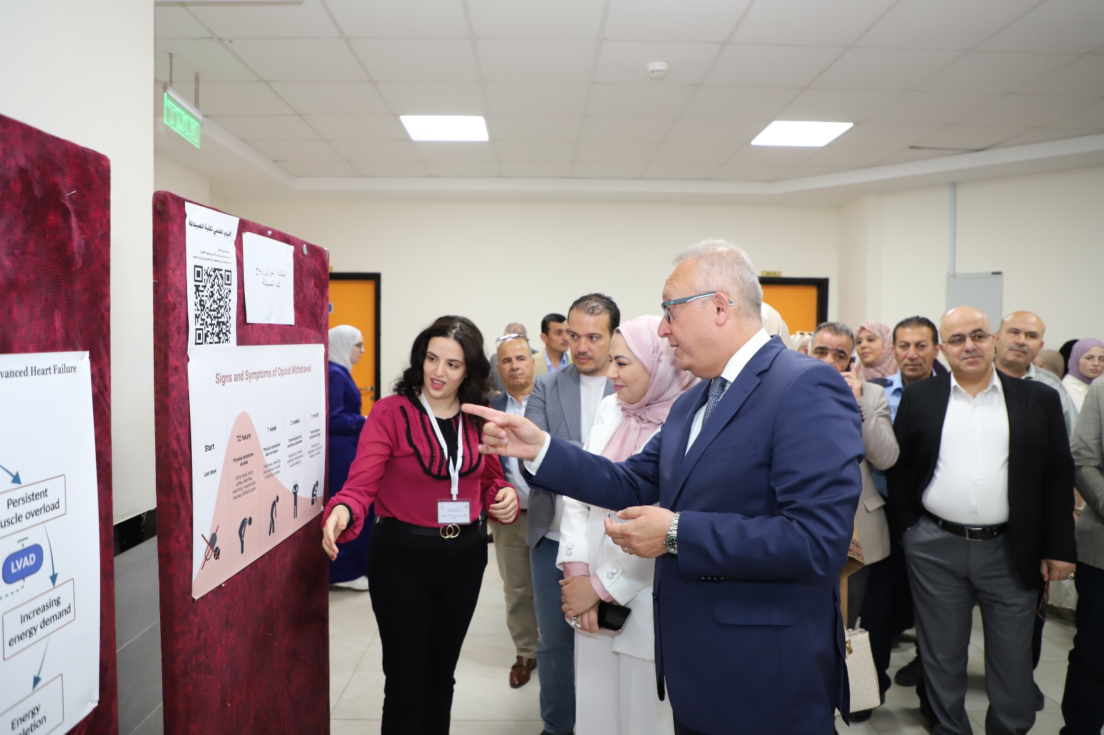 وخلال فعاليات اليوم العلمي افتتح مسّاد قاعة الندوات الرئيسية في الكلية، التي تم تجهيزها بدعم من نقابة الصيادلة، ومعرض الطلبة للمخططات العلمية، ومختبر الممارسة الصيدلانية في الكلية.