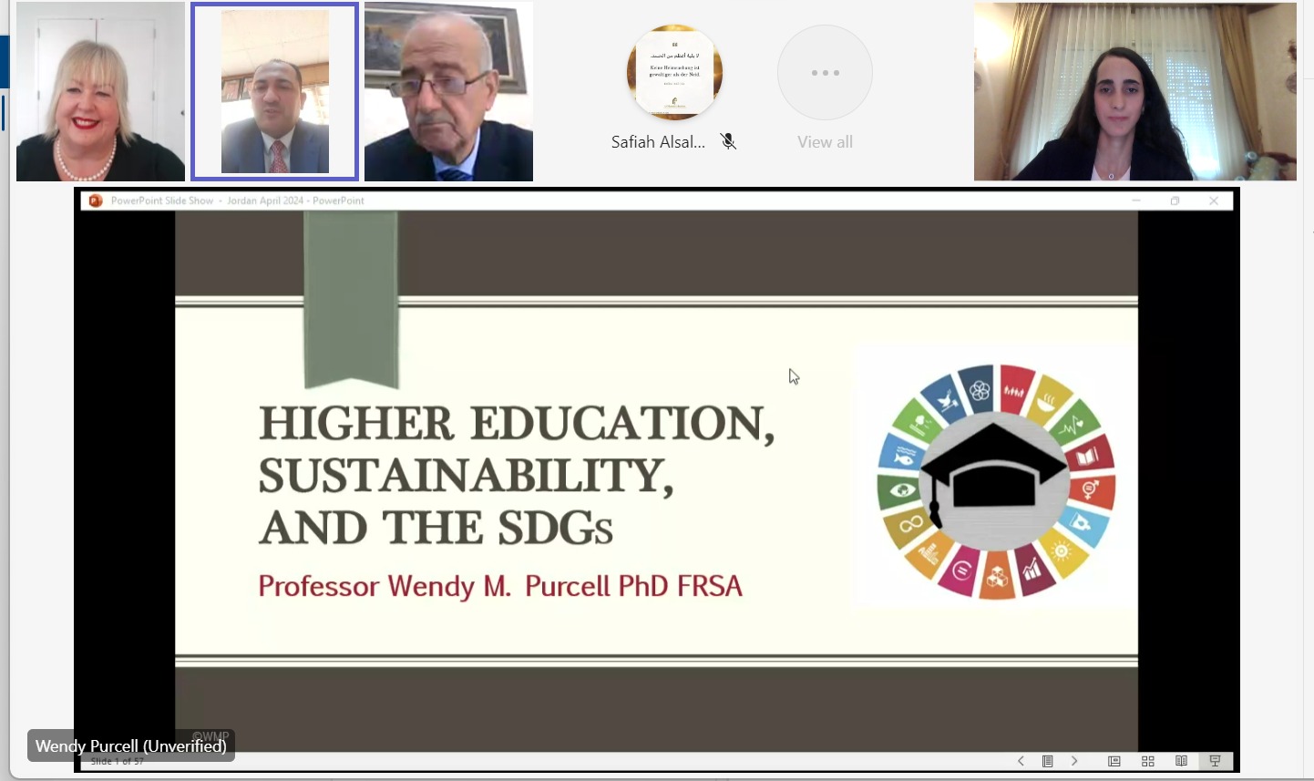 التعليم العالي والاستدامة وأهداف التنمية المستدامة ندوة علمية مشتركة في "أعمال الأردنية" مع أستاذة خبيره من جامعة هارفارد وروجترز وجامعة كلية لندن