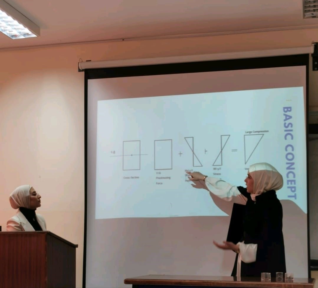 وفاز المشروع الذي حمل عنوان"الخرسانة مسبقة الإجهاد و الألياف الفولاذية" للطالبتين الأميرة عبد السلام وخولة عبد الرحيم.