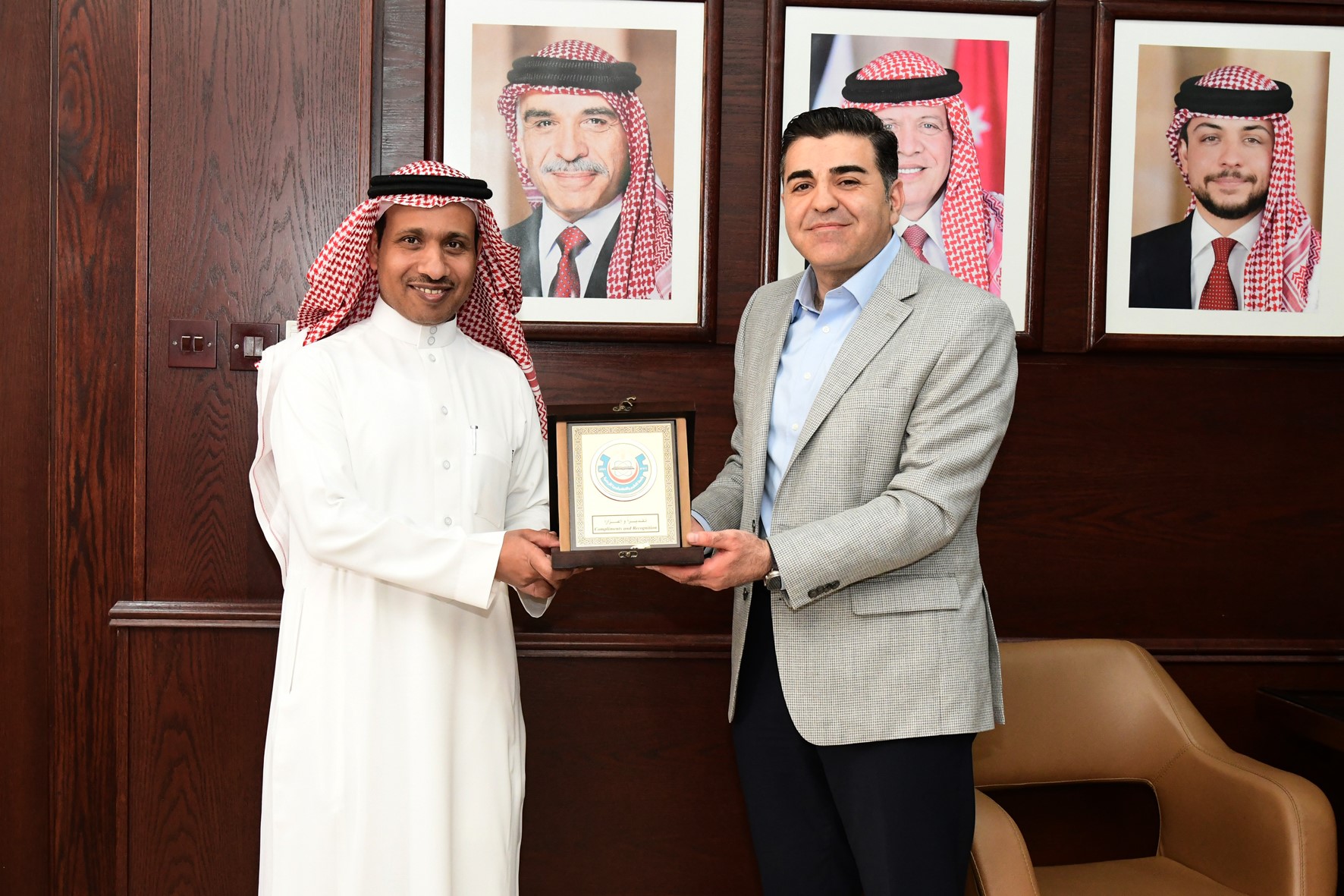 بحث رئيس جامعة العلوم والتكنولوجيا الأردنية الأستاذ الدكتور خالد السالم، والملحق الثّقافي السعودي في عمان، الأستاذ الدكتور محمد بن هزيم الشمري، والوفد المرافق، اليوم الثلاثاء، سبل تعزيز التعاون المشترك، ومتابعة أحوال الطلبة السعوديين الدارسين بالجامعة.