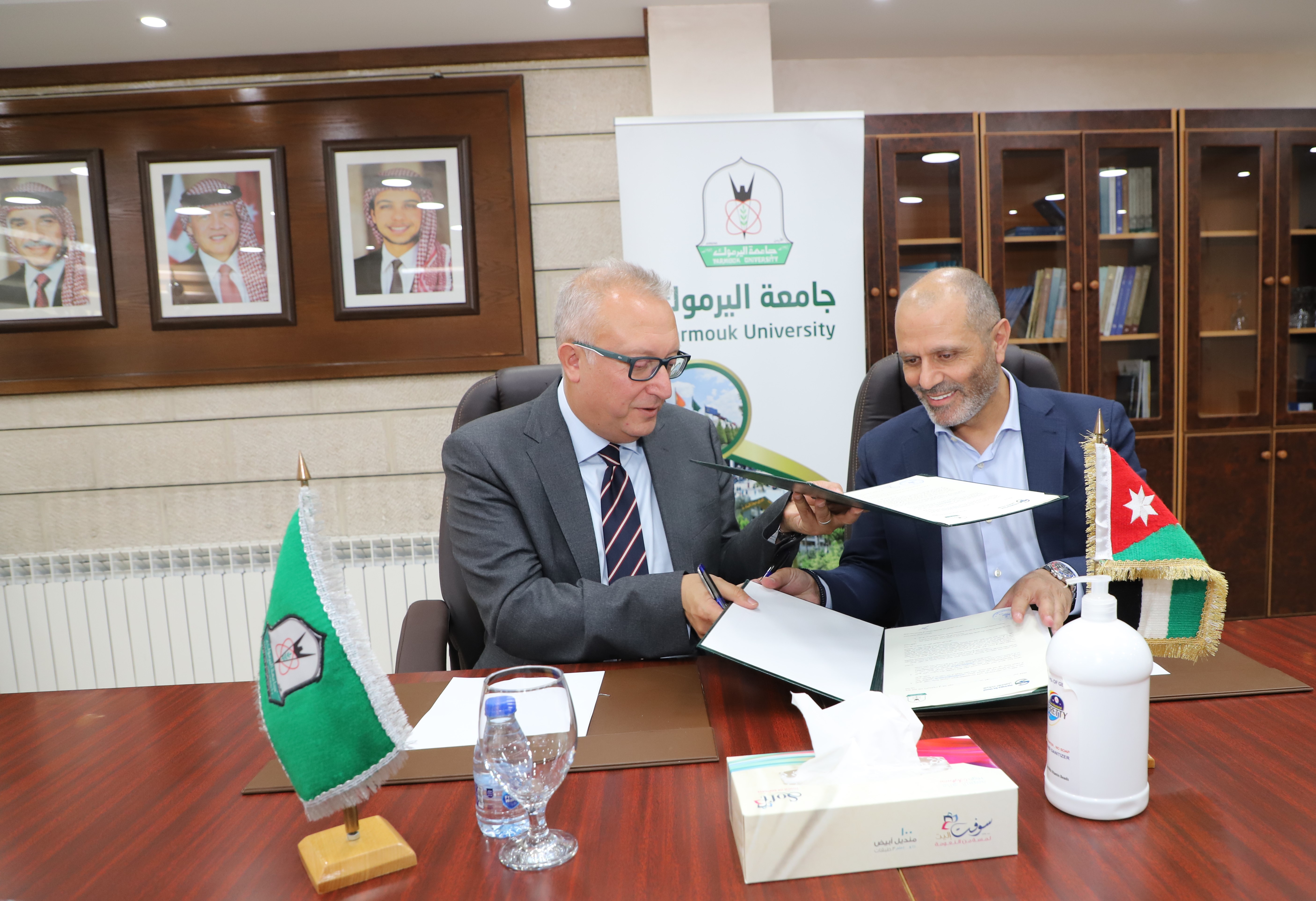 وحضر توقيع الاتفاقية عميد البحث العلمي والدراسات العليا الدكتور محمد الزبيدي، ومدير مركز الريادة والابتكار الدكتور "محمد أشرف" العتوم.