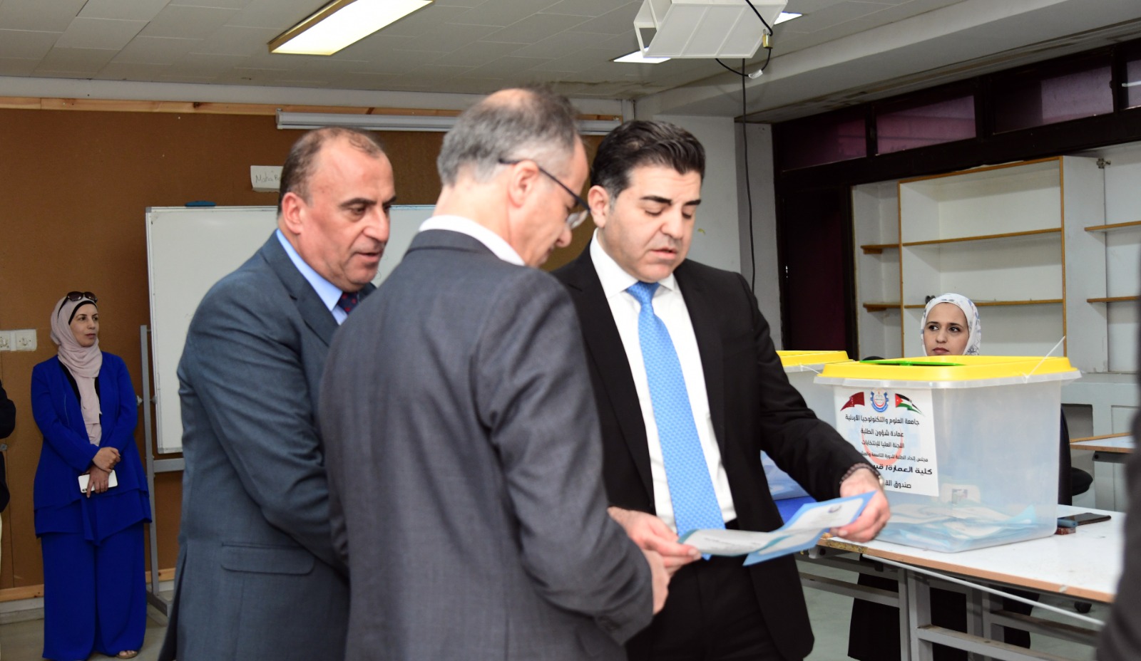 23 أيار /// قام رئيس جامعة العلوم والتكنولوجيا الأردنية، الأستاذ الدكتور خالد السالم، بجولة تفقدية لسير العملية الانتخابية لاتحاد الطلبة التي تجري اليوم في حرم الجامعة.