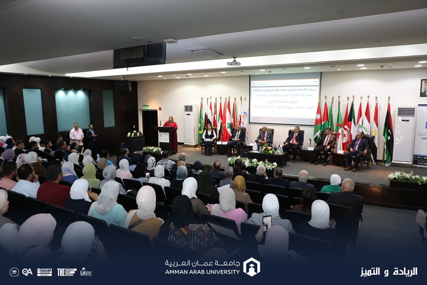 برعاية الأستاذ الدكتور محمد الوديان رئيس جامعة عمان العربية أقامت كلية العلوم التربوية والنفسية في الجامعة فعاليات اليوم العلمي الأول، بحضور مساعد الرئيس للشؤون الاكاديمية الأستاذ الدكتور إسماعيل يامين والدكتورة وفاء العيد عميدة كلية العلوم التربوية والنفسية وأعضاء الهيئتين التدريسية والإدارية وطلبة الكلية وبمشاركة عدة شخصيات تربوية، حيث تضمن اليوم العلمي عدة فعاليات منها: ندوة عملية وحملة للتبرع بالدم وبازاراً خيرياً للمجتمع المحلي.