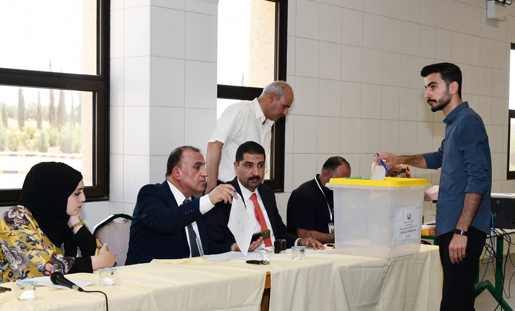 استنادًا لأحكام المادة (26) من تعليمات انتخابات اتحاد الطلبة في جامعة العلوم والتكنولوجيا الأردنية، وبعد أن أنهت الجامعة انتخابات الاتحاد يوم الخميس الموافق (2024/5/23) في دورته التاسعة والعشرين، عقدت الهيئة العامة الجديدة بالأغلبية المطلقة اجتماعها الأول بحضور اللجنة العليا لانتخابات اتحاد الطلبة برئاسة عميد شؤون الطلبة الأستاذ الدكتور ماجد مساعدة، مندوبًا عن رئيس الجامعة الأستاذ الدكتور خالد السالم، وذلك في تمام الساعة الواحدة ظهرًا من يوم الخميس الموافق 2024/5/30، وذلك لانتخاب الهيئة الإدارية والمكونة من سبعة أعضاء (رئيس وستة أعضاء).