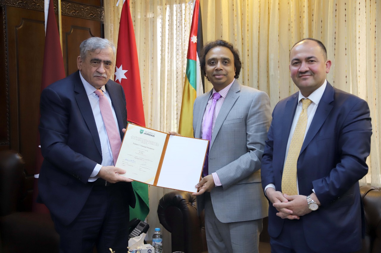 استقبل رئيس الجامعة الأردنية الدكتور نذير عبيدات في مكتبه أستاذ تكنولوجيا معلومات الأعمال في جامعة فيرجينيا التقنية الأستاذ الفخري في الجامعة الأردنية الدكتور فيسواناث فينكاتش، بحضور عميد كلية الأعمال الدكتور رائد مساعدة بني ياسين.